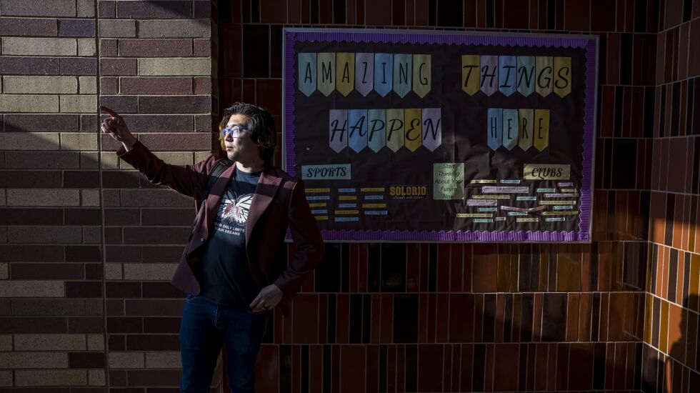 When he walked through the front doors into the school’s broad lobby for work every day, he saw what a high school should be all about. The boys soccer team donned their uniforms and walked out fist-bumping the security guard. A folkloric dance team practiced behind a curtain to the left. Posters, murals and awards decorated nearly every inch of every wall.