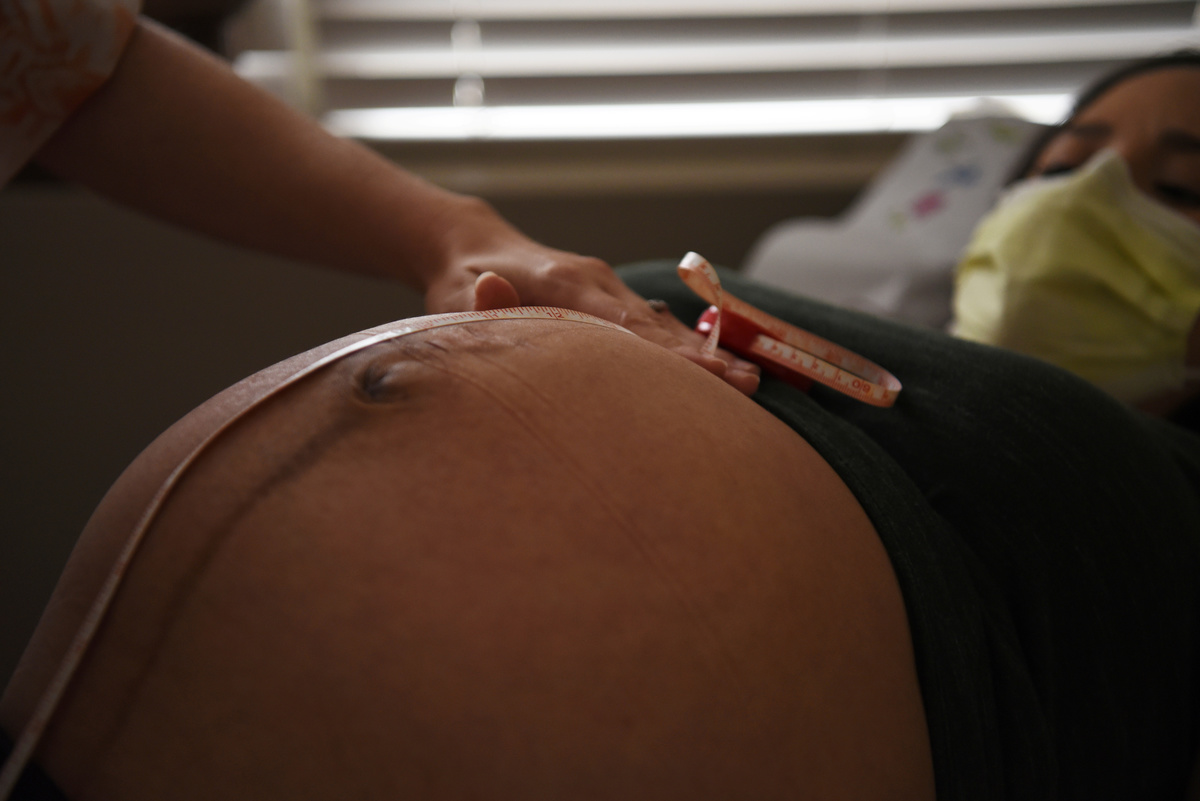 Pregnant nurse Samantha Salinas attends an appointment with her midwives at Birth Center Stone Oak amid a coronavirus disease (COVID-19) outbreak in San Antonio, Texas, U.S., May 6, 2020. REUTERS/Callaghan O'Hare