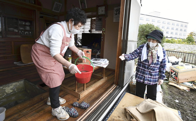 The typhoon caused the Chikumagawa river to burst through its embankments on Oct. 13, which flooded the first floor of his two-story home.