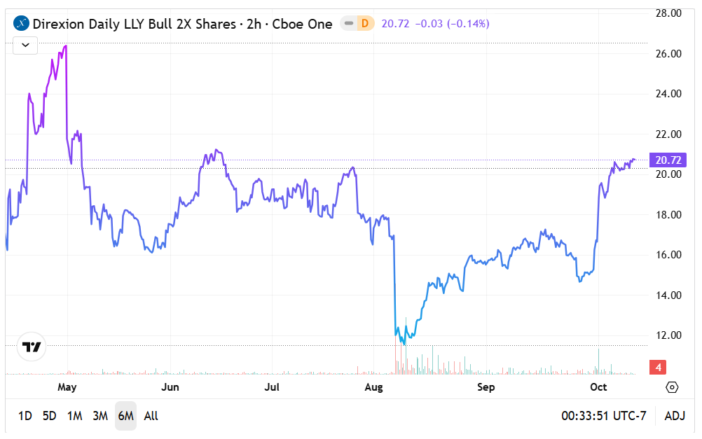 The Direxion ETFs: With intriguing narratives on both sides of the table, financial services provider Direxion provides two countervailing products for those who want to jump into the fray. Optimistic traders may consider the Direxion Daily LLY Bull 2X Shares (NASDAQ:ELIL), which tracks 200% of the performance of LLY stock. On the other end, pessimists may consider the Direxion Daily LLY Bear 1X Shares (NASDAQ:ELIS), which tracks 100% of the inverse performance of the namesake security.