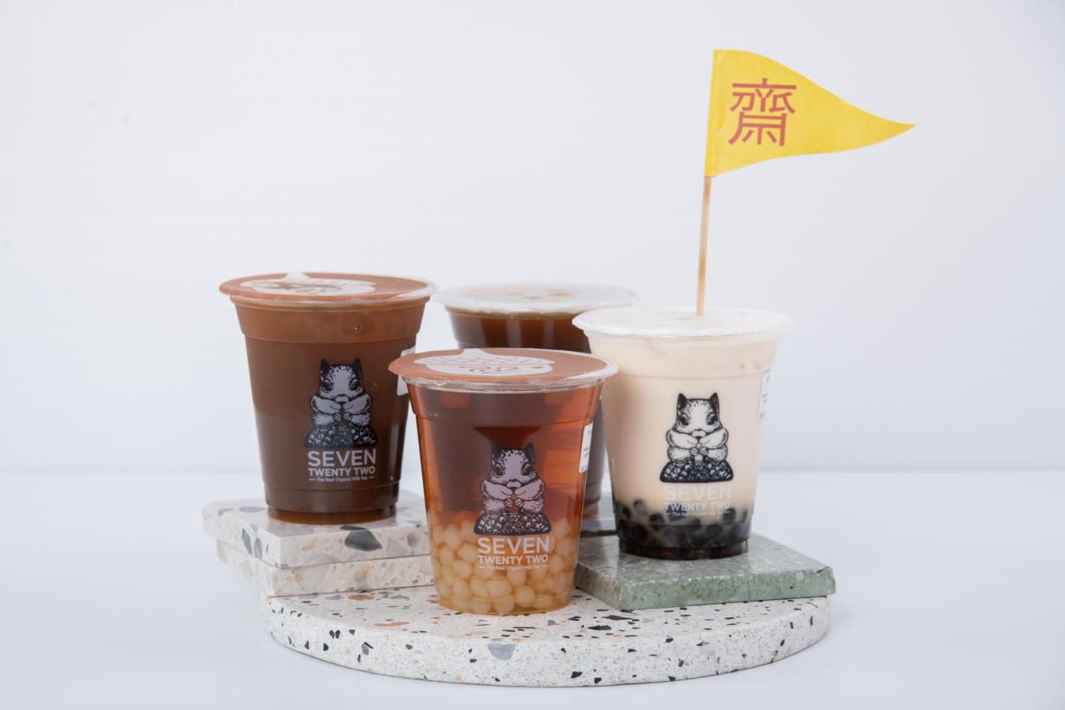 Helping to wash the food down were a very aromatic peach tea with konjac pearls (95 baht) and brown sugar bubbles with organic soy milk (95 baht) from 722 Organic Milk Tea shop (call 095-846-2505).