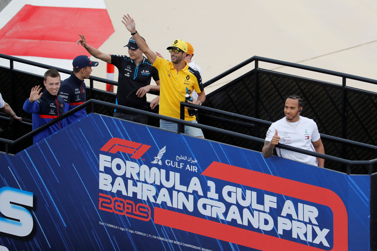 The race finished with the field following the safety car, deployed as marshals removed Daniel Ricciardo’s stranded Renault.