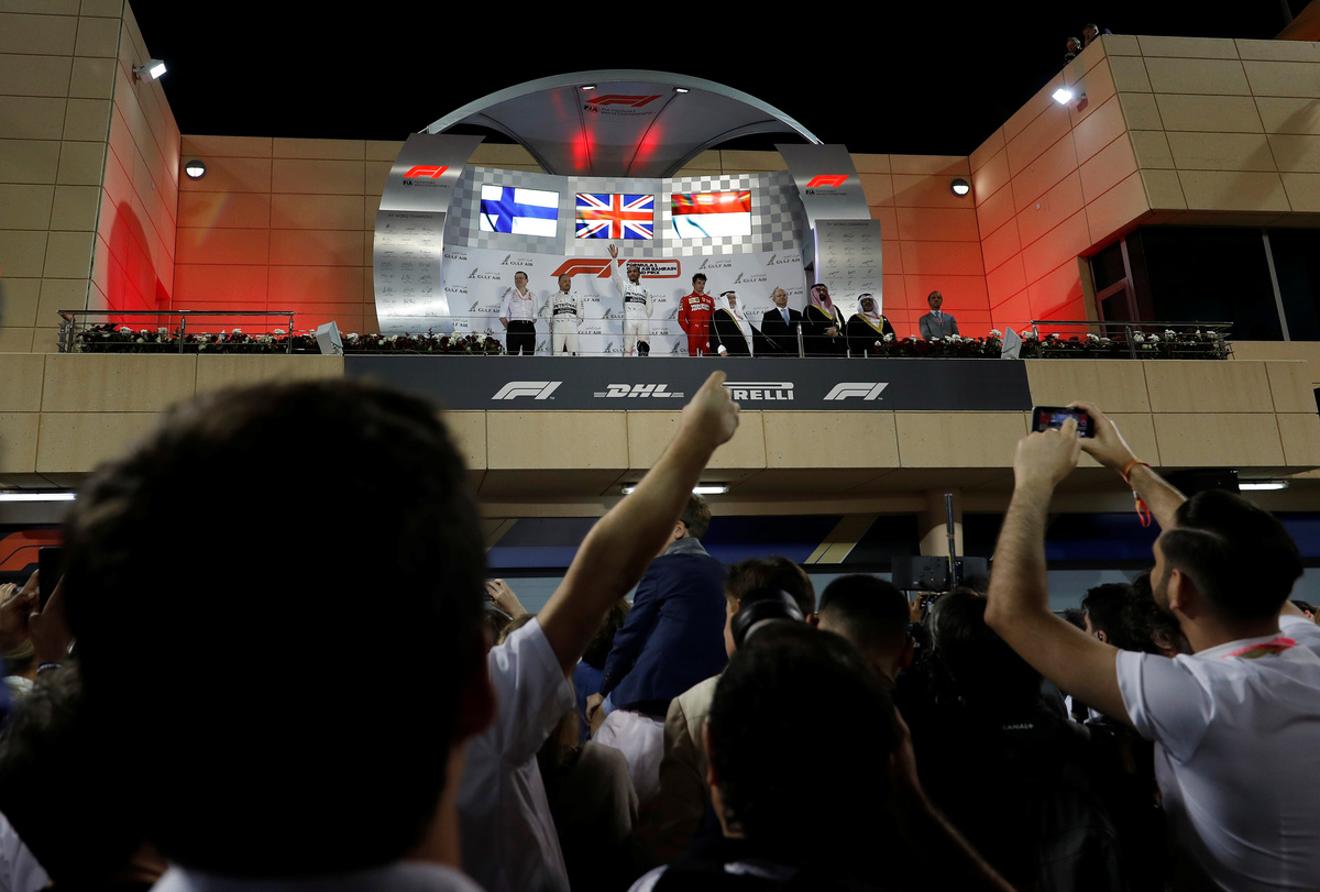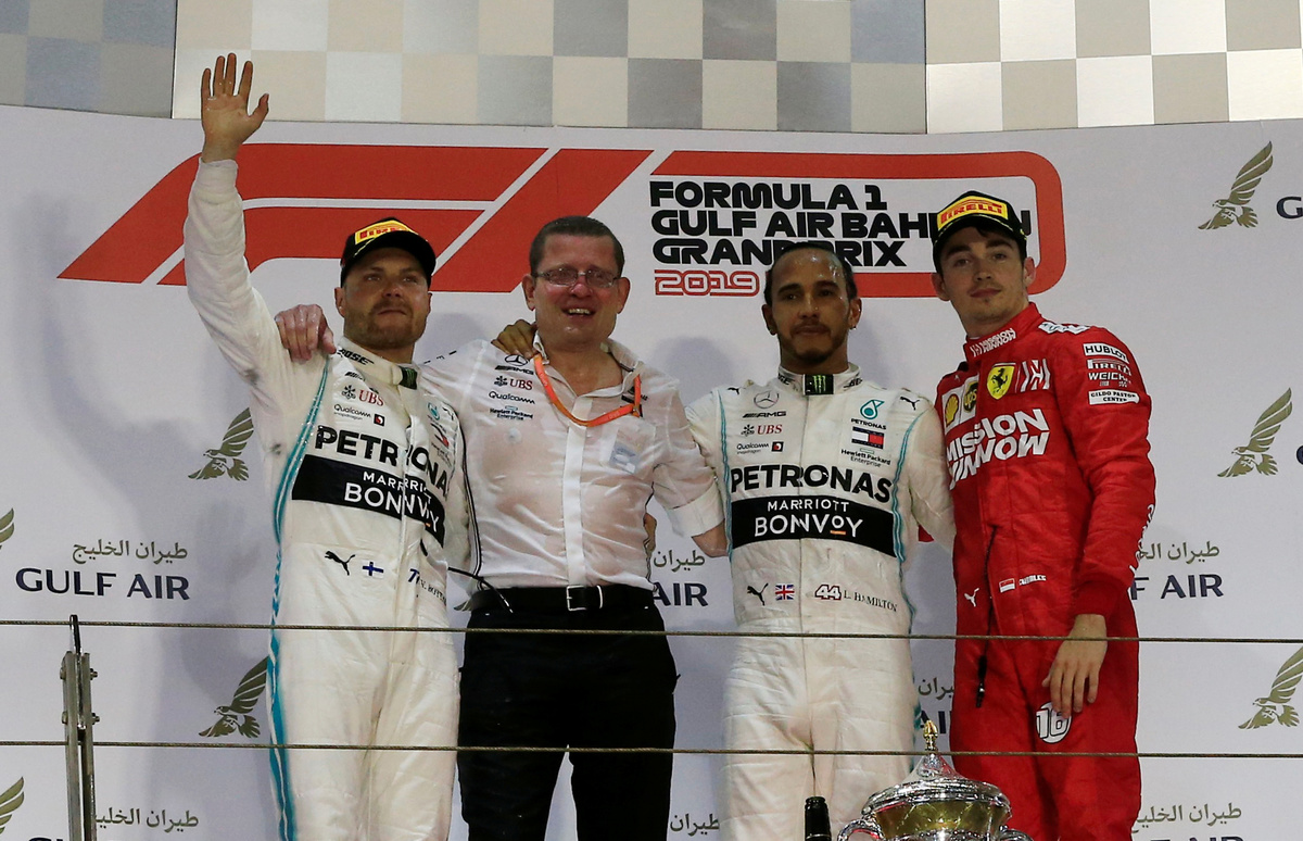 MANAMA (Reuters) - Five times world champion Lewis Hamilton took a lucky Bahrain Grand Prix win for Mercedes on Sunday after engine trouble in the dying stages denied Ferrari's Charles Leclerc a first Formula One victory.