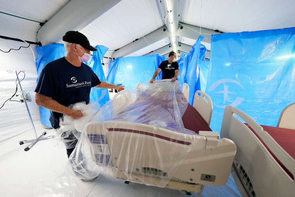 The first emergency field hospital opened last week with federal government backing after hospitalizations began spiking in Mississippi; this one is being spearheaded by a Christian relief charity Samaritan's Purse. The North Carolina-based relief organization arrived Sunday with more than 50 more medical professionals to erect tents with 32 more beds.