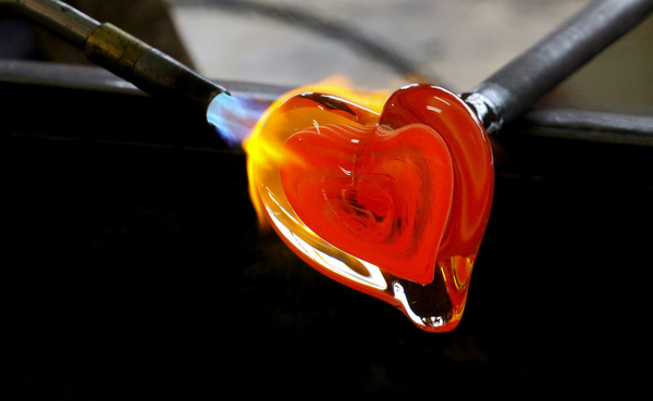 The pieces are solid and surprisingly strong, Welch says. The glassworks makes a variety of art pieces, but most hearts are just for Valentine's Day.