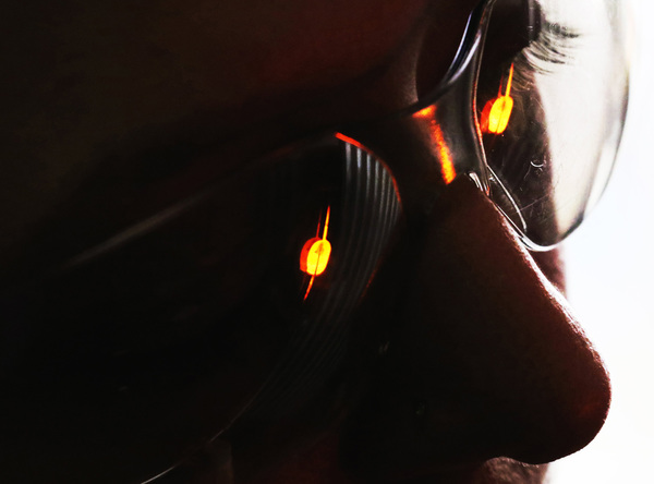 Welch says "this is not in a soft place." The glass studio is steel and concrete with harsh temperatures, especially in summer.
