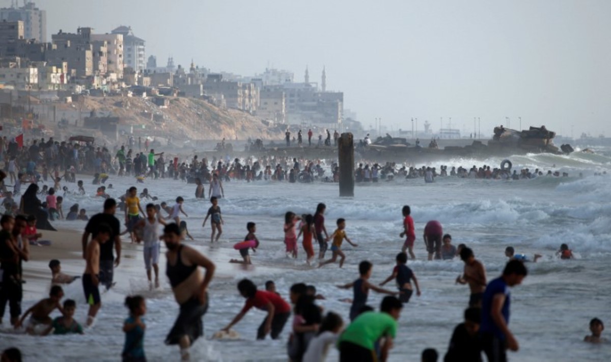 GAZA (Reuters) - Maher Taha, his wife and six children sit enjoying the breeze on beach in Gaza, doing their best to ignore the rubbish and raw sewage floating a few yards off shore.