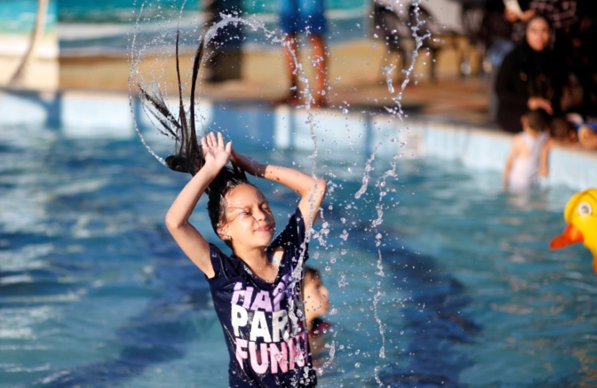 The water is polluted and the smell is unpleasant but they need a break from the oppressive heat at home - and there are few other options for a family on their budget with a power supply that only works four hours a day.