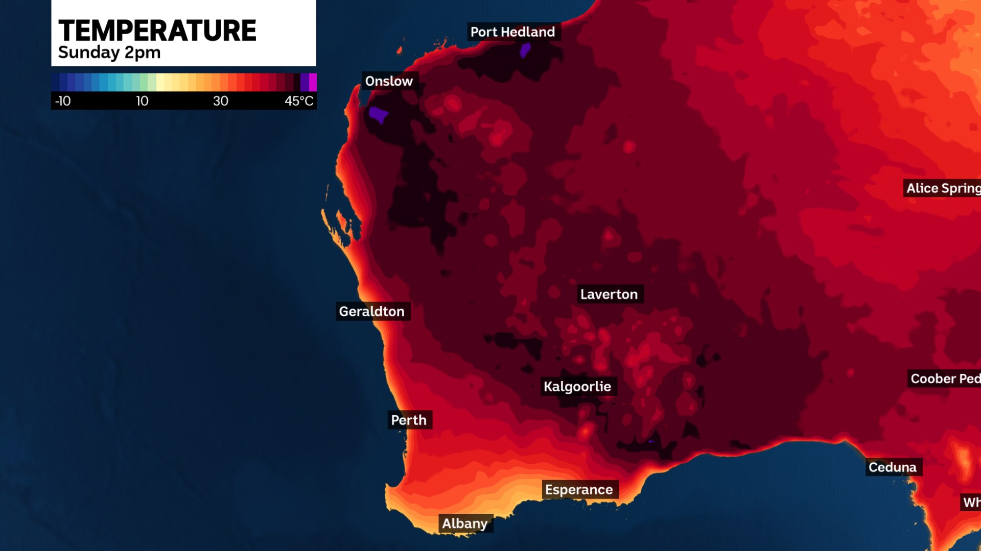 While the south-east states are feeling the impacts of a low intensity heatwave, much of WA has passed severe heatwave thresholds as maximums climb into the mid 40s.