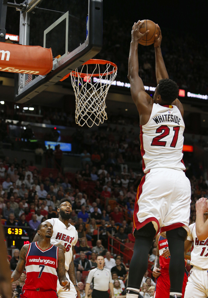 While Heat center Hassan Whiteside certainly stood tallest, closing with 14 points and 21 rebounds, the Heat lacked enough to offset the Wizards' backcourt of Bradley Beal and John Wall, with Wall finishing with 27 points and Beal 26.