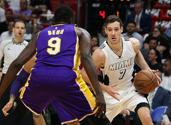 With Tyler Johnson and Wayne Ellington not available due to thigh contusions, Spoelstra had to alter his starting lineup. That had Josh Richardson opening at shooting guard, Winslow at small forward, and Kelly Olynyk inserted at power forward, to play alongside Whiteside and Dragic.