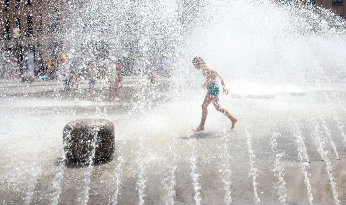 People cool off during a sunny day at the Stachus public fountain in Munich, southern Germany, July 25, 2019. REUTERS/Michael Dalder