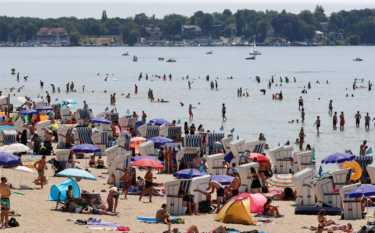 People stroll during a sunny day in downtown Munich, southern Germany, July 25, 2019. REUTERS/Michael DalderPeople catch a wave at the Eisbach river during a sunny day in downtown Munich, southern Germany, July 25, 2019. REUTERS/Michael DalderPeople stroll during a sunny day in downtown Munich, southern Germany, July 25, 2019. REUTERS/Michael DalderPeople sunbathe and cool off as temperatures reach new record highs at Berlin's Wannsee lido, Germany, July 25, 2019. REUTERS/Fabrizio Bensch