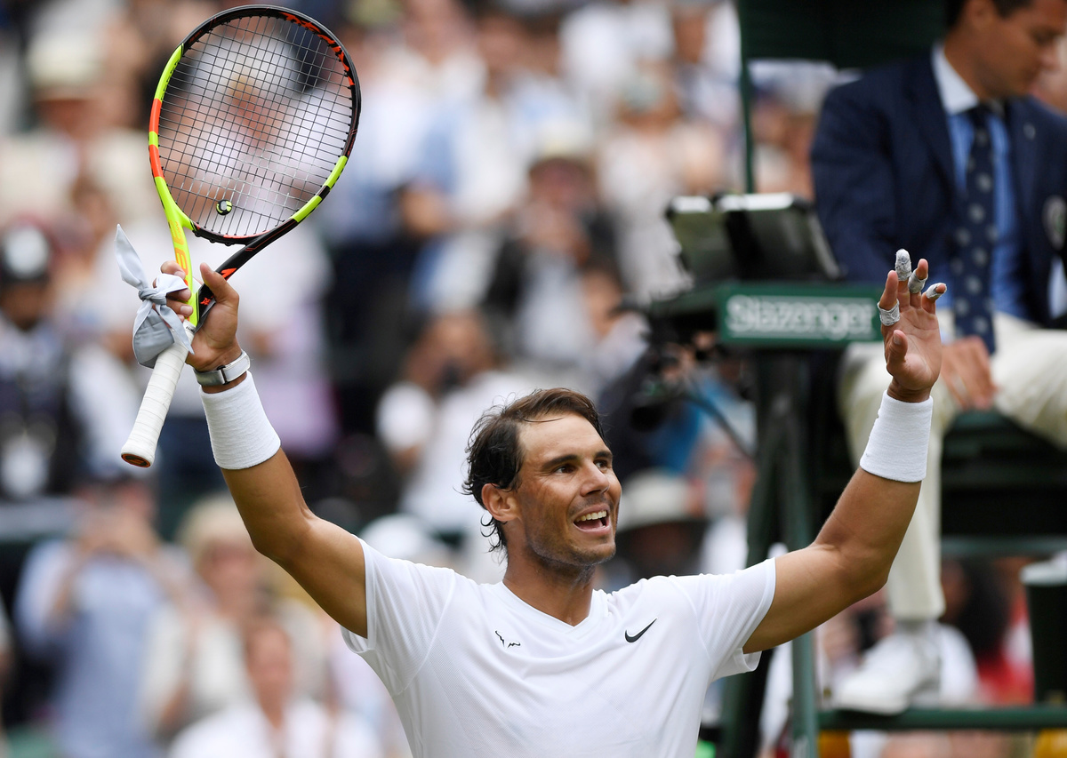 LONDON (Reuters) - The tennis balls becoming heavier during play on the grass at the All England Club is to be blamed for the slower game at the Wimbledon and not the playing surface, third seed Rafa Nadal said on Saturday.