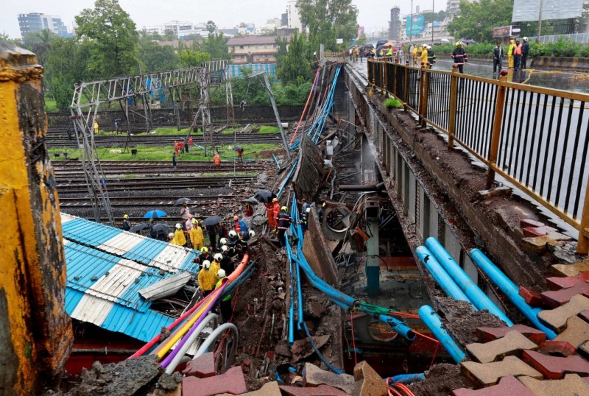A footbridge, weakened by the rain, partially collapsed in the western suburb of Andheri, blocking train services on one of three main railway lines into the city.