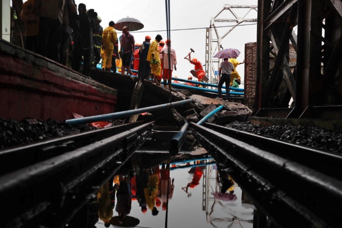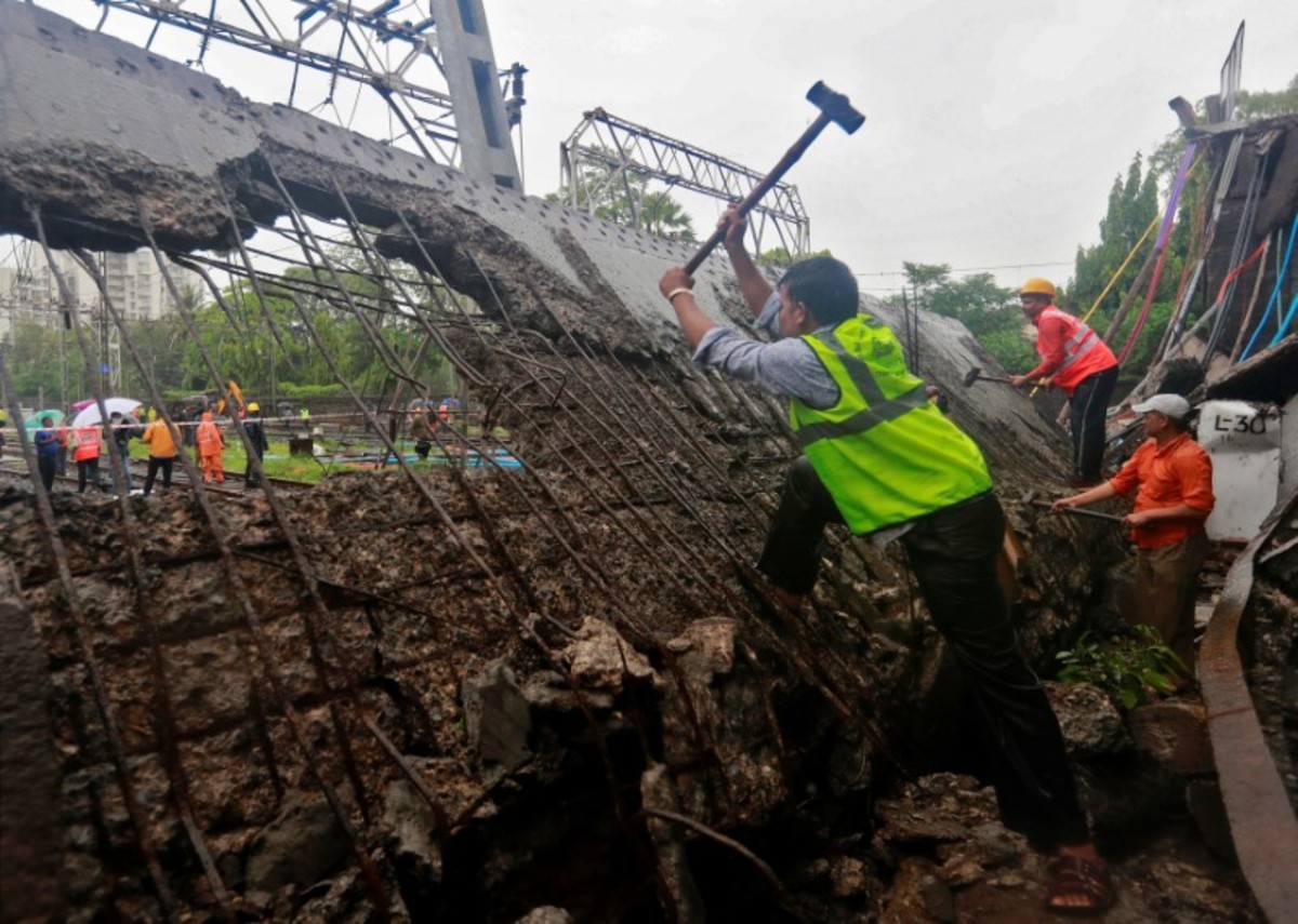 Rescue workers seen working at the site of an overbridge that collapsed over the railway tracks after heavy rains in Mumbai, India July 3, 2018. REUTERS/Danish SiddiquiRescue workers seen working at the site of an overbridge that collapsed over the railway tracks after heavy rains in Mumbai, India July 3, 2018. REUTERS/Danish Siddiqui