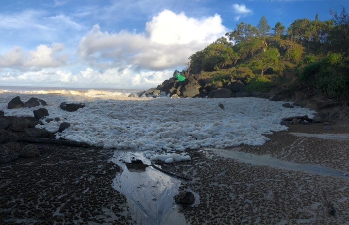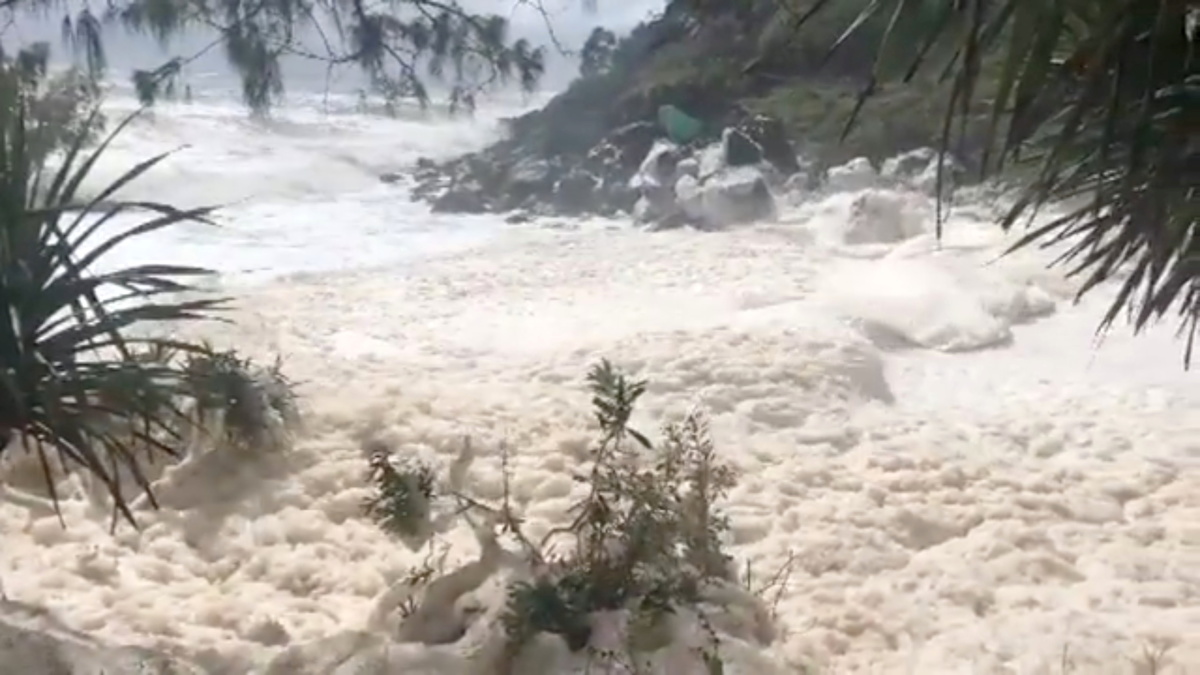 The storm also whipped up thick sea foams, a rare event, along the beaches in Gold Coast that lured families and children to play in the bubbles, footage on social media showed.