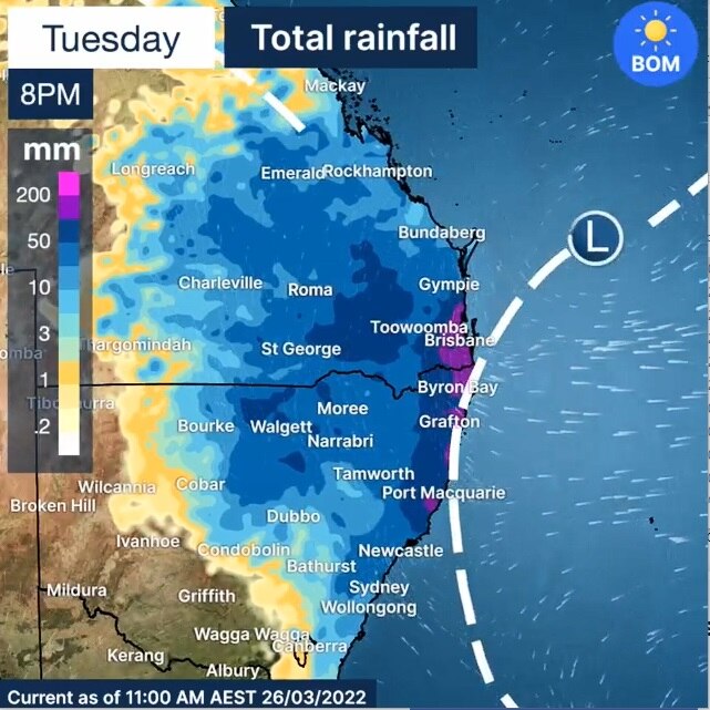 A severe weather warning is also in place for south-east Queensland with forecasts of heavy rain on Monday into Tuesday.