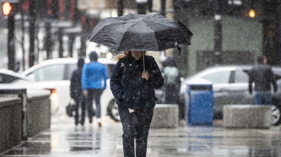 An ice warning has been issued for parts of the Chicago area Wednesday as a winter storm is expected to bring freezing rain, sleet and thunderstorms throughout the day.