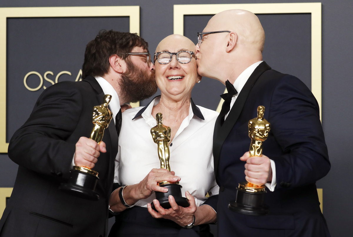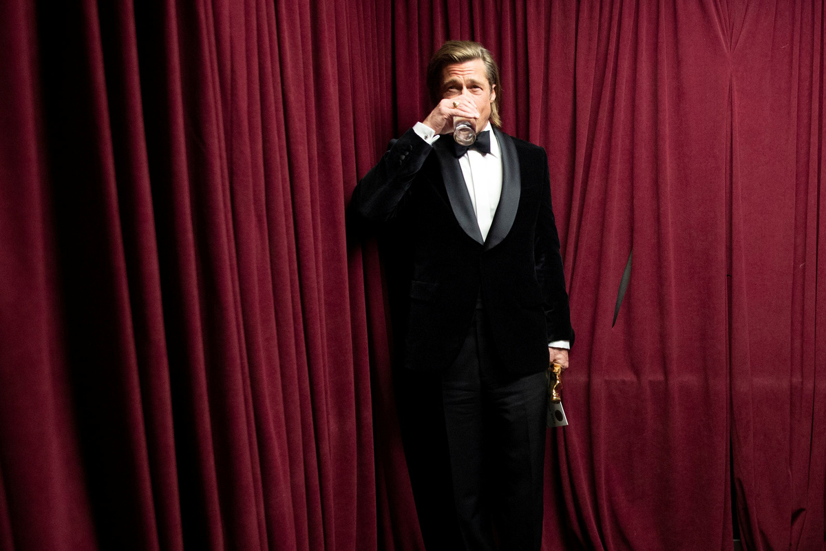 Brad Pitt drinks water as he holds the Oscar for Best Supporting Actor in "Once Upon a Time in Hollywood" at the 92nd Academy Awards in Hollywood, Los Angeles, California, U.S., February 9, 2020. Matt Petit/A.M.P.A.S./Handout via REUTERS Elton John poses with the Oscar for Best Original Song for "(I'm Gonna) Love Me Again" from "Rocketman" in the photo room during the 92nd Academy Awards in Hollywood, Los Angeles, California, U.S., February 9, 2020. REUTERS/Lucas Jackson Kwak Sin Ae and Bong Joon-ho win the Oscar for Best Picture for "Parasite" at the 92nd Academy Awards in Hollywood, Los Angeles, California, U.S., February 9, 2020. REUTERS/Mario AnzuoniKwak Sin Ae and Bong Joon-ho win the Oscar for Best Picture for "Parasite" at the 92nd Academy Awards in Hollywood, Los Angeles, California, U.S., February 9, 2020. REUTERS/Mario AnzuoniDirector Bong Joon-ho accepts the Oscar for Best Foreign Language Film for "Parasite" of South Korea at the 92nd Academy Awards in Hollywood, Los Angeles, California, U.S., February 9, 2020. REUTERS/Mario AnzuoniDirector Bong Joon-ho accepts the Oscar for Best Foreign Language Film for "Parasite" of South Korea at the 92nd Academy Awards in Hollywood, Los Angeles, California, U.S., February 9, 2020. REUTERS/Mario AnzuoniDirector Bong Joon Ho wins the Oscar for Best International Feature Film for "Parasite" of South Korea at the 92nd Academy Awards in Hollywood, Los Angeles, California, U.S., February 9, 2020. REUTERS/Mario AnzuoniLaura Dern wins the Oscar for Best Supporting Actress in "Marriage Story" at the 92nd Academy Awards in Hollywood, Los Angeles, California, U.S., February 9, 2020. REUTERS/Mario AnzuoniLaura Dern wins the Oscar for Best Supporting Actress in "Marriage Story" at the 92nd Academy Awards in Hollywood, Los Angeles, California, U.S., February 9, 2020. REUTERS/Mario AnzuoniSteven Bognar and Julia Reichert accept the Oscar for Best Documentary Feature for "American Factory" at the 92nd Academy Awards in Hollywood, Los Angeles, California, U.S., February 9, 2020. REUTERS/Mario AnzuoniSteven Bognar and Julia Reichert accept the Oscar for Best Documentary Feature for "American Factory" at the 92nd Academy Awards in Hollywood, Los Angeles, California, U.S., February 9, 2020. REUTERS/Mario AnzuoniSteven Bognar, Julia Reichert and Jeff Reichert pose with the Oscar for Best Documentary Feature for "American Factory" in the photo room during the 92nd Academy Awards in Hollywood, Los Angeles, California, U.S., February 9, 2020. REUTERS/Lucas JacksonBrad Pitt accepts the Oscar for Best Supporting Actor for "Once Upon a Time in Hollywood" at the 92nd Academy Awards in Hollywood, Los Angeles, California, U.S., February 9, 2020. REUTERS/Mario AnzuoniBillie Eilish, wearing Chanel, speaks during the Oscars arrivals at the 92nd Academy Awards in Hollywood, Los Angeles, California, U.S., February 9, 2020. REUTERS/Mike BlakeBilly Porter poses on the red carpet during the Oscars arrivals at the 92nd Academy Awards in Hollywood, Los Angeles, California, U.S., February 9, 2020. REUTERS/Mike BlakeJoaquin Phoenix poses on the red carpet during the Oscars arrivals at the 92nd Academy Awards in Hollywood, Los Angeles, California, U.S., February 9, 2020. REUTERS/Eric Gaillard