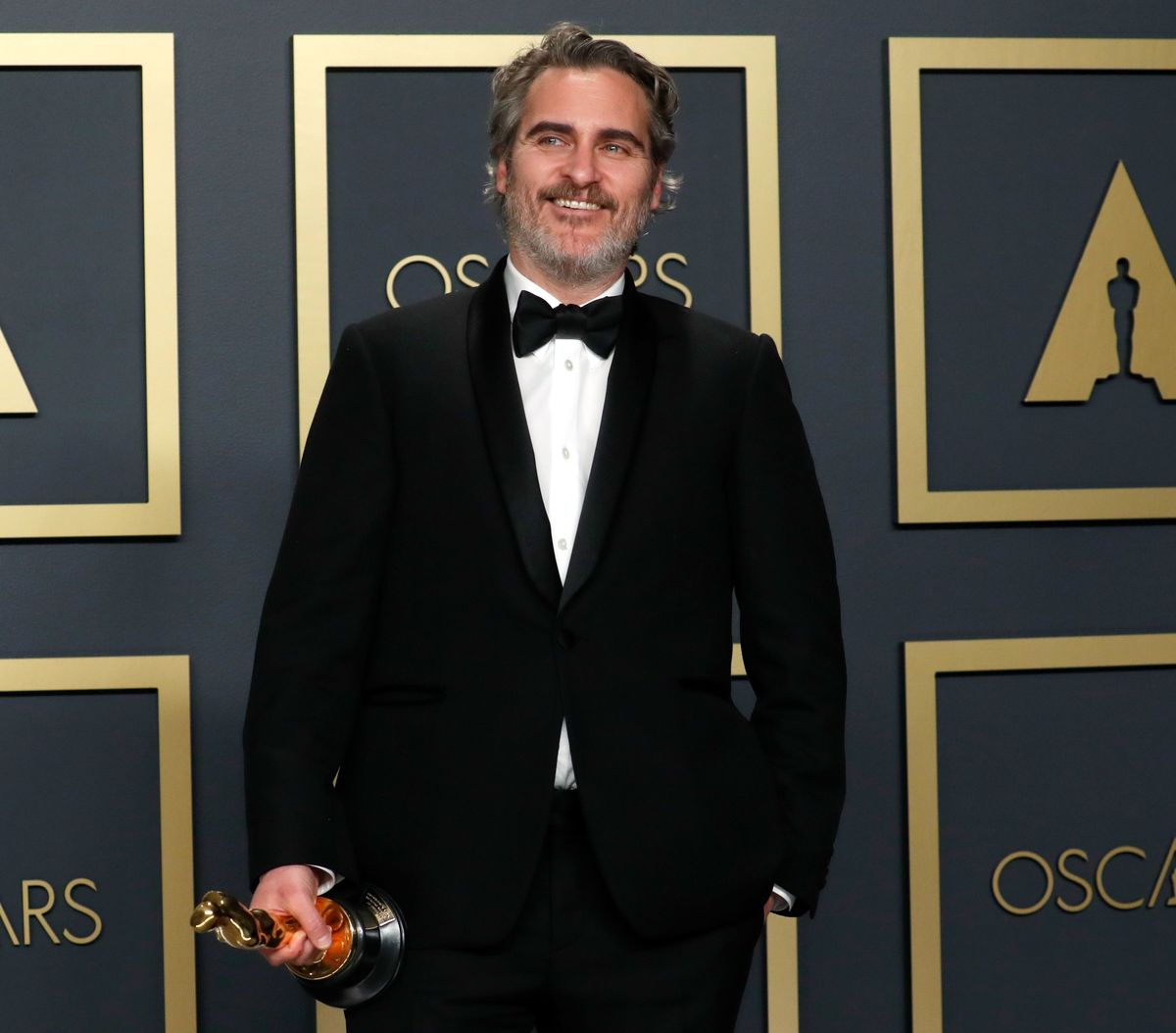 Joaquin Phoenix poses with his Oscar for Best Actor in a Leading Role for “Joker” in the photo room during the 92nd Academy Awards in Hollywood, Los Angeles, California, U.S., February 9, 2020. REUTERS/Lucas Jackson
