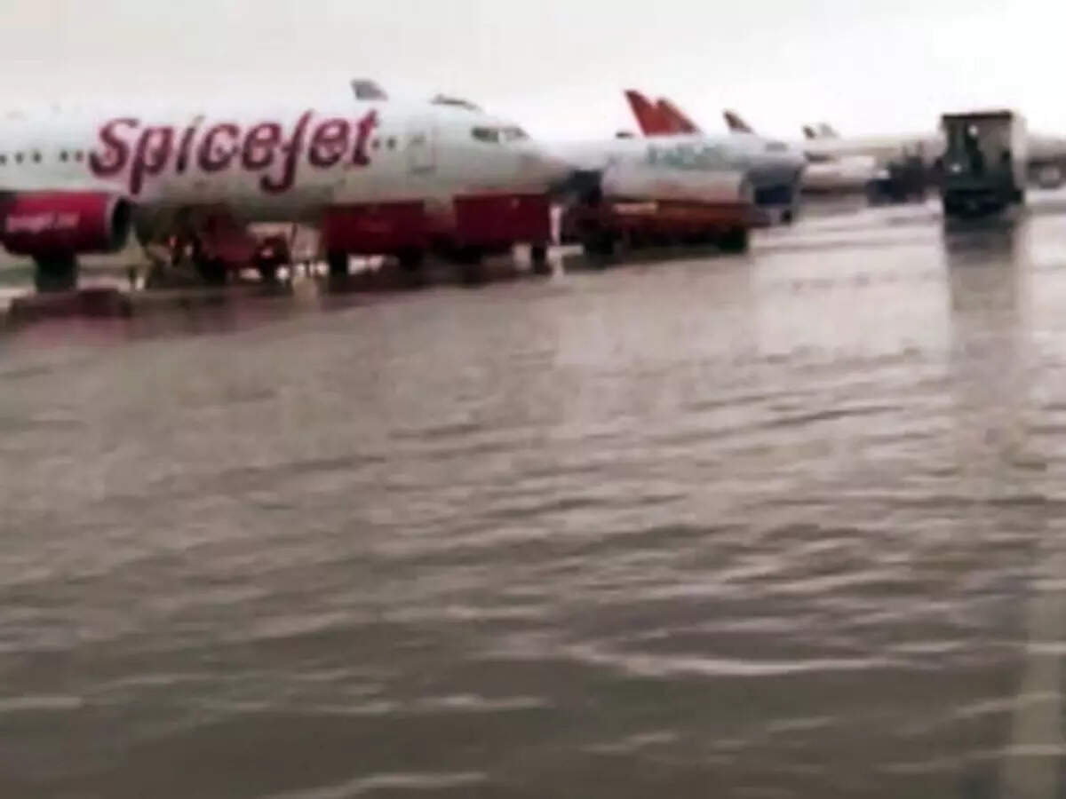 As the forecourt of the Delhi airport was also waterlogged, three flights were cancelled and five diverted to Jaipur and Ahmedabad.