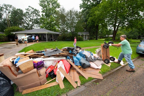 In Baton Rouge Louisiana, piles of ruined furniture, carpet and clothing lined the street in a neighborhood where residents were beginning to clean up from the earlier storms, WBRZ-TV reported. One man, David Earl, told the station that so much water flowed into his home through cracks and a dog door that his furniture began to float.