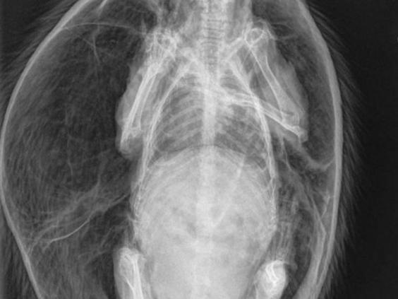 “I took the stricken animal straight to Peak Vets in Sheffield, where he was X-rayed and they released some of the air from under his skin.