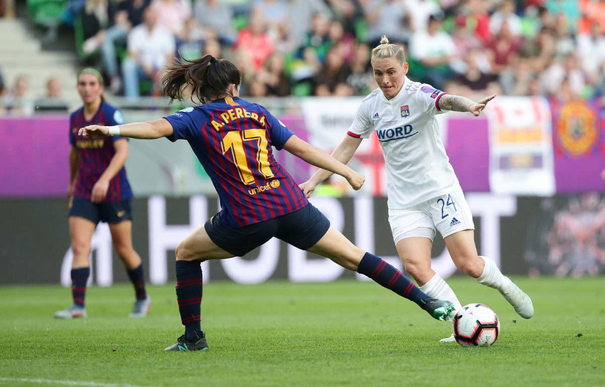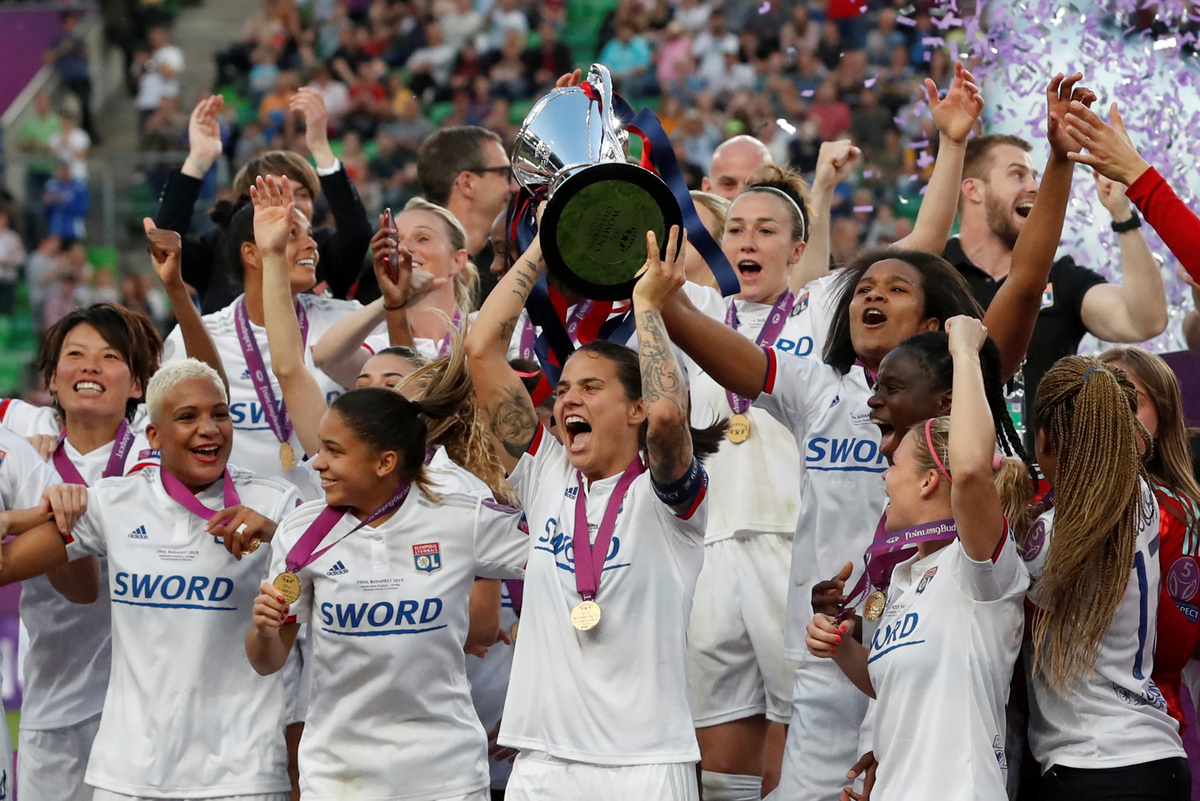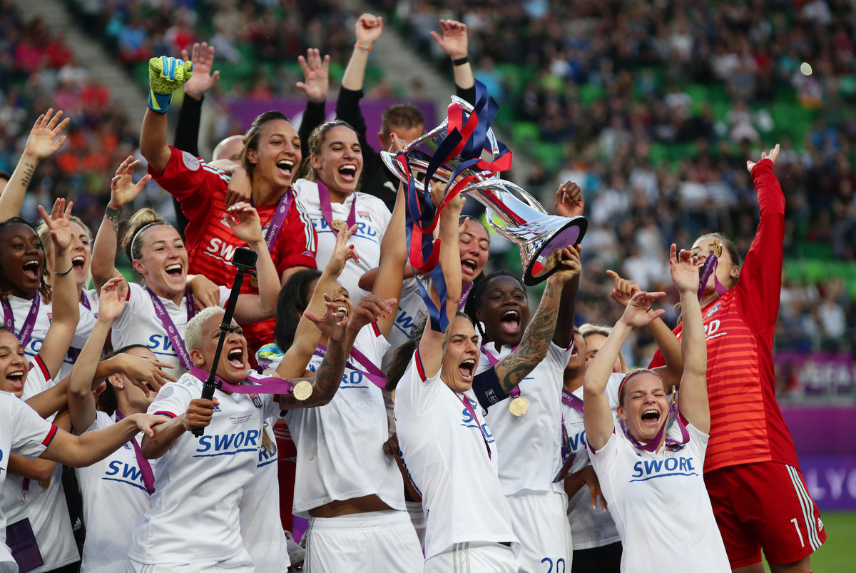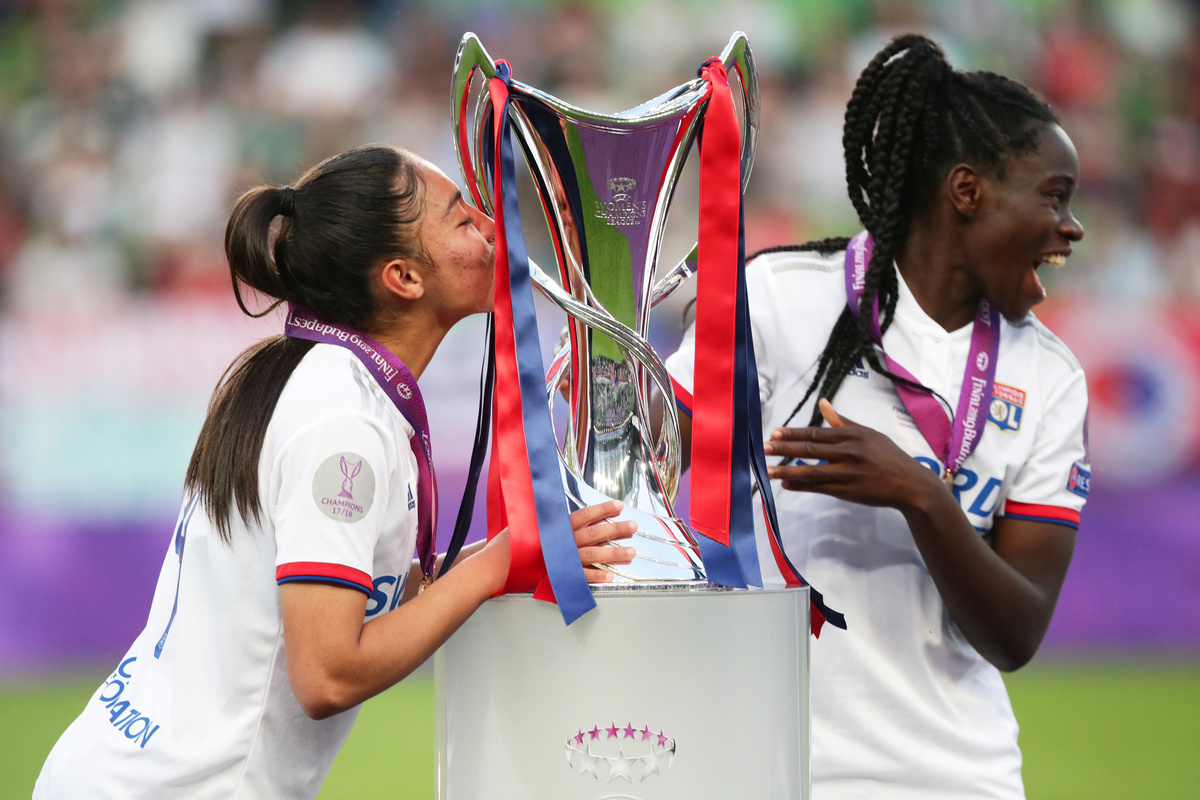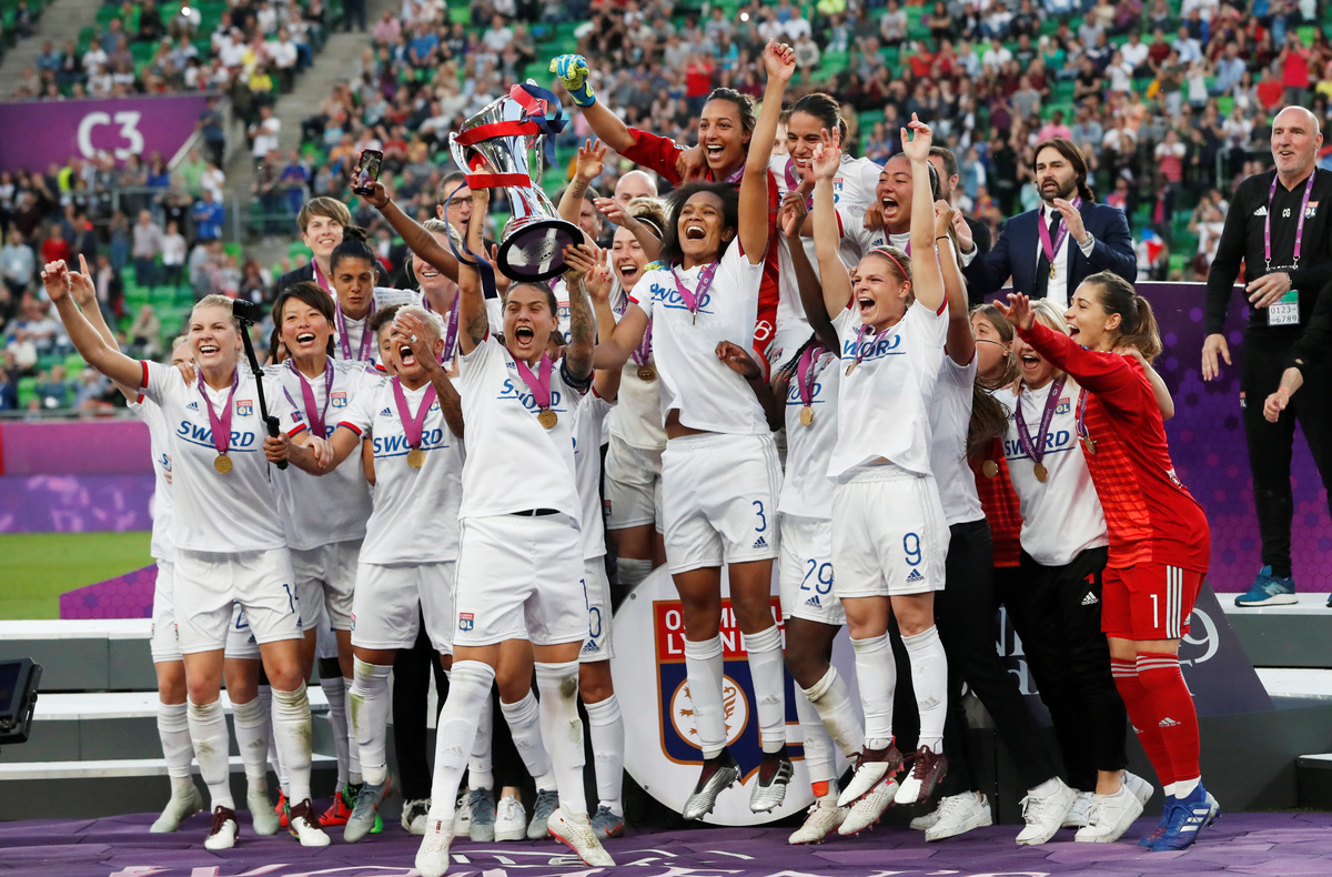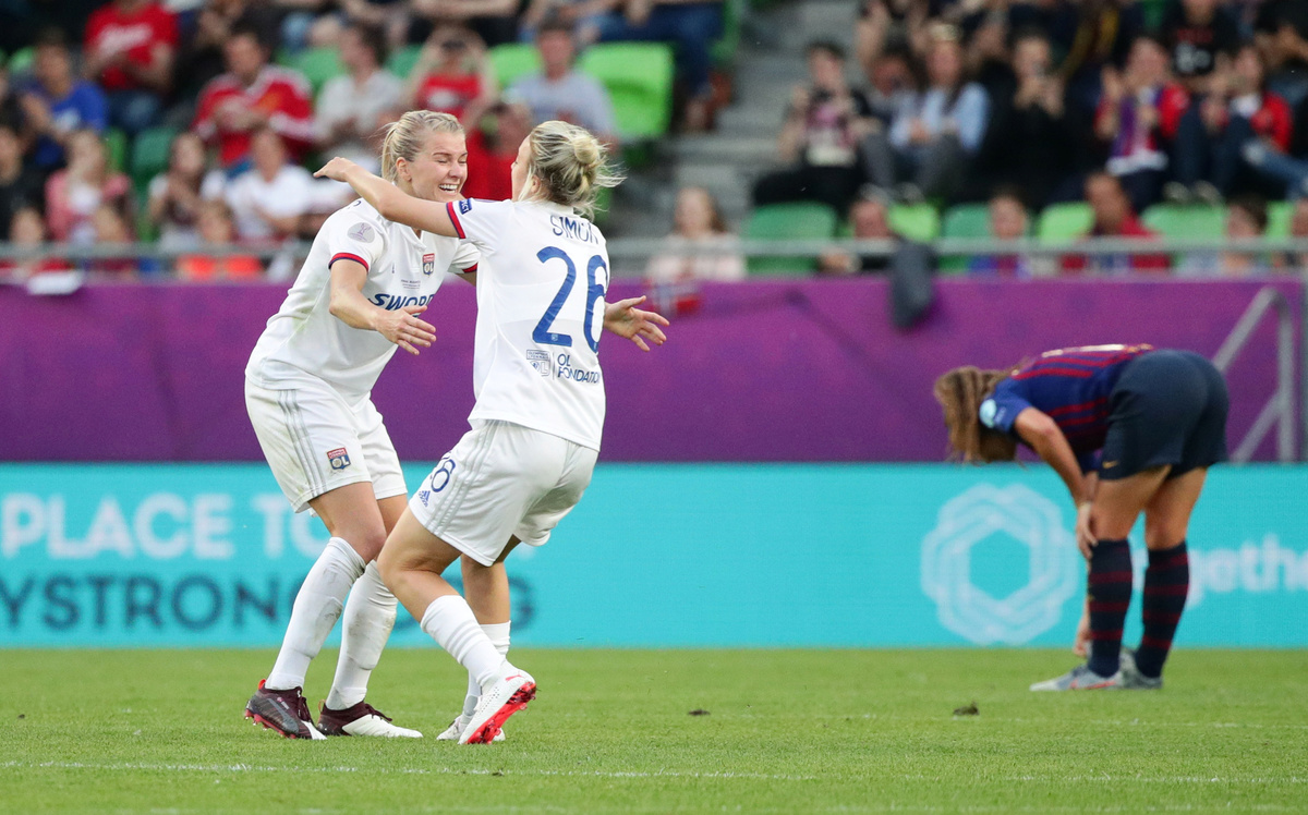 Soccer Football - Women's Champions League Final - Ferencvaros Stadium, Budapest, Hungary - May 18, 2019 Olympique Lyonnais' Amandine Henry and Carolin Simon celebrate winning the Women's Champions League REUTERS/Lisi NiesnerSoccer Football - Women's Champions League Final - Ferencvaros Stadium, Budapest, Hungary - May 18, 2019 Olympique Lyonnais' Jess Fishlock in action with Barcelona's Andrea Pereira REUTERS/Lisi NiesnerSoccer Football - Women's Champions League Final - Ferencvaros Stadium, Budapest, Hungary - May 18, 2019 Olympique Lyonnais' Eugenie Le Sommer in action with Barcelona's Aitana Bonmati and Mariona Caldentey REUTERS/Lisi NiesnerSoccer Football - Women's Champions League Final - Ferencvaros Stadium, Budapest, Hungary - May 18, 2019 Olympique Lyonnais' Wendie Renard celebrates winning the Women's Champions League with Jess Fishlock after the match REUTERS/Bernadett SzaboSoccer Football - Women's Champions League Final - Ferencvaros Stadium, Budapest, Hungary - May 18, 2019 Olympique Lyonnais' Dzsenifer Marozsan and team mates celebrate winning the Women's Champions League final with the trophy REUTERS/Bernadett SzaboSoccer Football - Women's Champions League Final - Ferencvaros Stadium, Budapest, Hungary - May 18, 2019 Olympique Lyonnais' Jess Fishlock celebrates winning the Women's Champions League with team mates REUTERS/Lisi NiesnerSoccer Football - Women's Champions League Final - Ferencvaros Stadium, Budapest, Hungary - May 18, 2019 Barcelona's Toni Duggan in action with Olympique Lyonnais' Griedge Mbock REUTERS/Bernadett SzaboSoccer Football - Women's Champions League Final - Ferencvaros Stadium, Budapest, Hungary - May 18, 2019 Barcelona's Aitana Bonmati and team mates look dejected with their medals after losing the Women's Champions League final REUTERS/Bernadett SzaboSoccer Football - Women's Champions League Final - Ferencvaros Stadium, Budapest, Hungary - May 18, 2019 Olympique Lyonnais' Amandine Henry celebrates winning the Women's Champions League with team mates after the match REUTERS/Bernadett SzaboSoccer Football - Women's Champions League Final - Ferencvaros Stadium, Budapest, Hungary - May 18, 2019 Barcelona's Asisat Oshoala scores their first goal REUTERS/Lisi NiesnerSoccer Football - Women's Champions League Final - Ferencvaros Stadium, Budapest, Hungary - May 18, 2019 Olympique Lyonnais' Jess Fishlock in action with Barcelona's Andrea Pereira REUTERS/Lisi NiesnerSoccer Football - Women's Champions League Final - Ferencvaros Stadium, Budapest, Hungary - May 18, 2019 Olympique Lyonnais' Amandine Henry celebrates winning the Women's Champions League with team mates after the match .REUTERS/Bernadett SzaboSoccer Football - Women's Champions League Final - Ferencvaros Stadium, Budapest, Hungary - May 18, 2019 Barcelona's Aitana Bonmati in action with Olympique Lyonnais' Dzsenifer Marozsan REUTERS/Bernadett Szabo