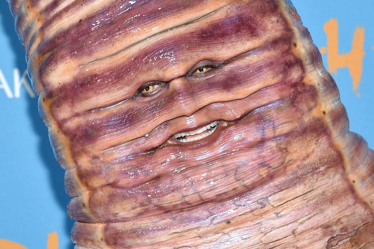The supermodel-turned-TV personality is fond of surprising her guests with her elaborate costumes, like in 2022, when she arrived at the event on the end of a fishing line, encased in a slithering worm costume.