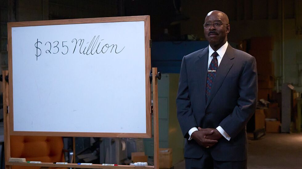 The opening title cards tell us, “In 1988, the U.S. banking system had yet to become fully computerized. Every day, corporations transferred millions of dollars using only a simple confirmation code. This code would then be used to confirm the transfer by a second bank employee, via a phone call.” Cut to Courtney B. Vance as a well-dressed man we will soon learn is one Jeremy Horne, the name given to the character loosely based on Armand Moore, as he enters a posh Chicago bank and initiates an international wire transaction of some $80 million. Cue the obligatory “3 WEEKS EARLIER” graphic, the standard-issue shots of the skyline and the L, and off we go.