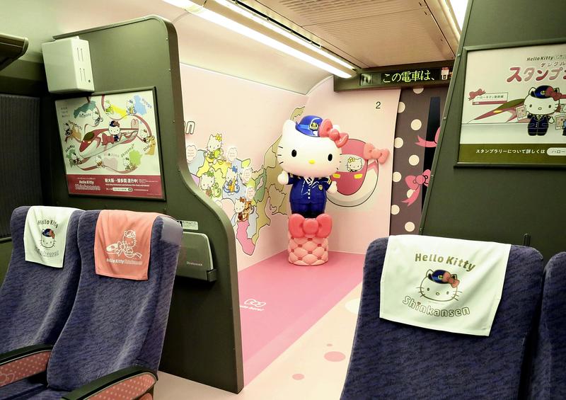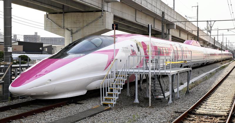 FUKUOKA -- West Japan Railway Co. unveiled Monday a "Hello Kitty Shinkansen" bullet train, which will begin service on June 30 between Shin-Osaka Station and Hakata Station in Fukuoka.