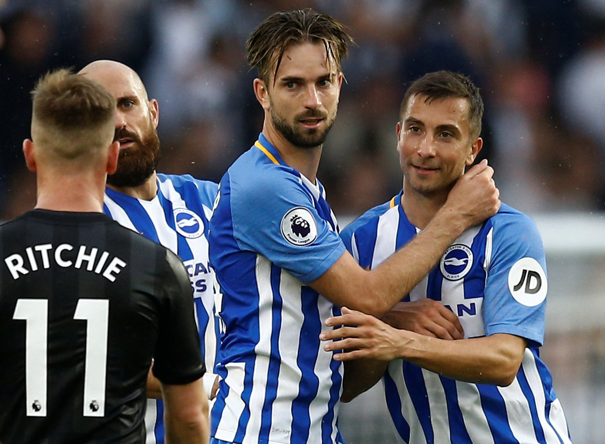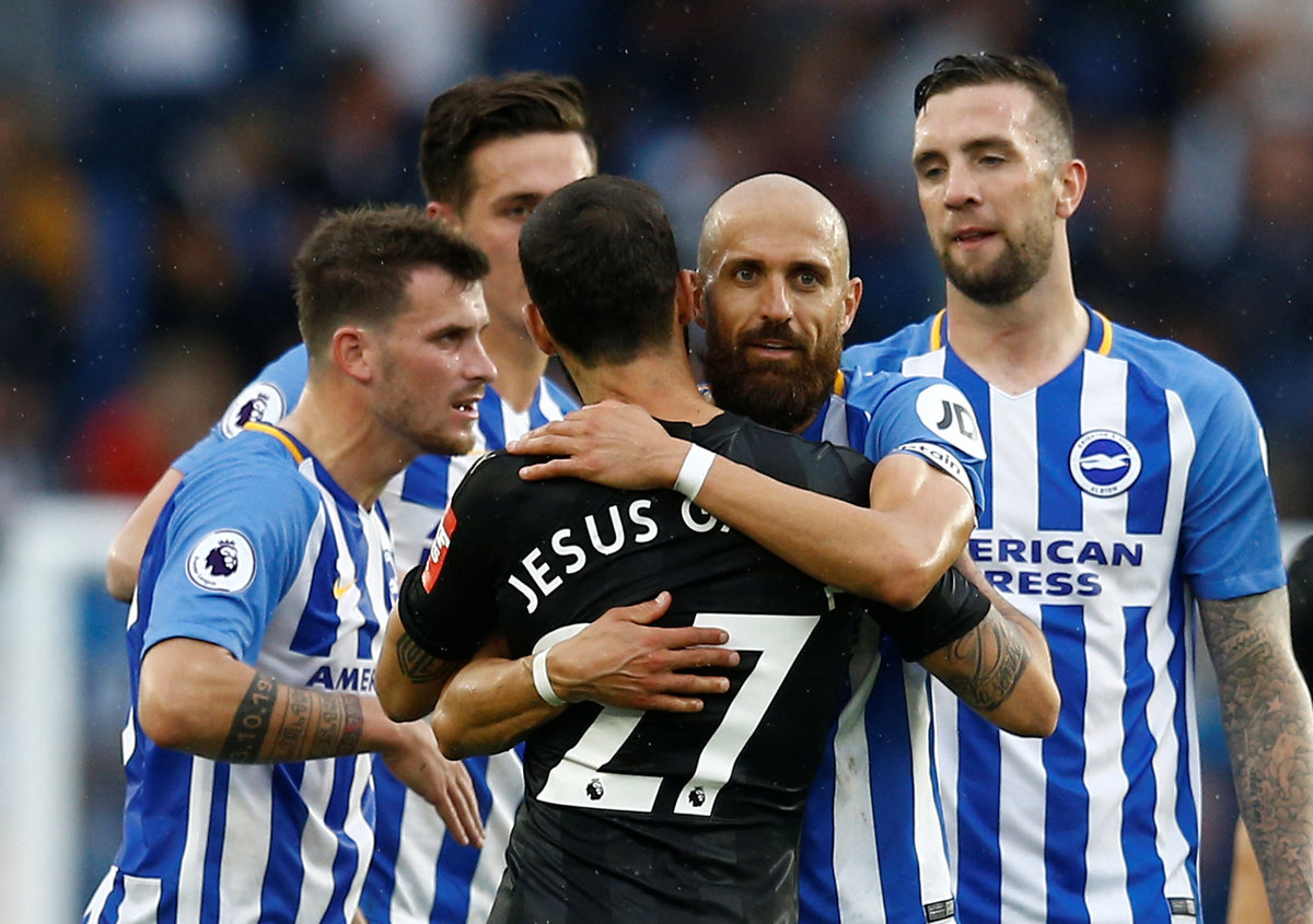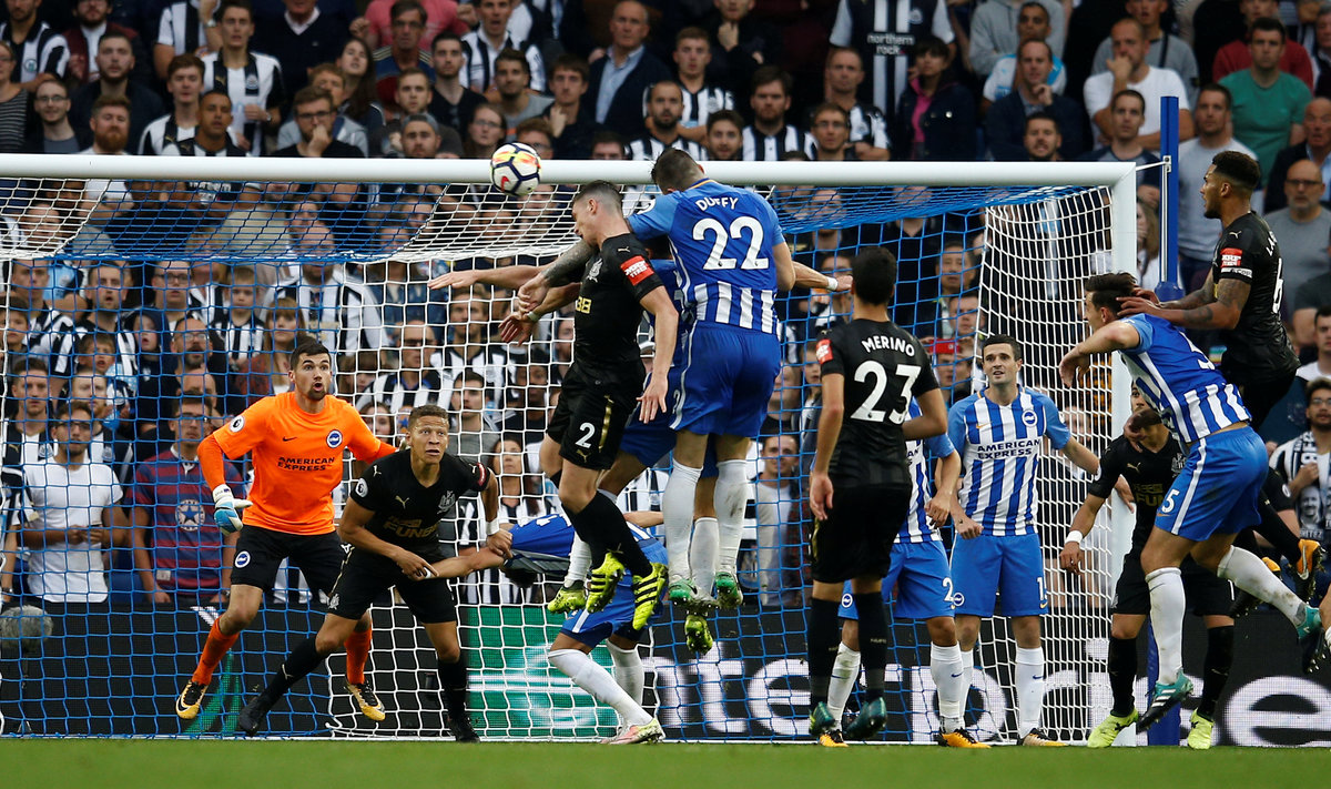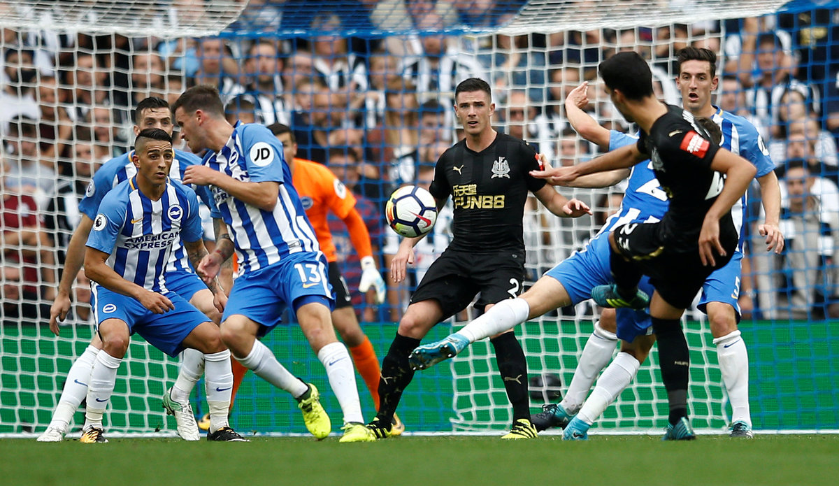 Soccer Football - Premier League - Brighton & Hove Albion vs Newcastle United - Amex Stadium, Brighton, Britain - September 24, 2017 Brighton's Bruno Saltor hugs Newcastle United's Jesus Gamez after the match REUTERS/Peter Nicholls EDITORIAL USE ONLY. No use with unauthorized audio, video, data, fixture lists, club/league logos or "live" services. Online in-match use limited to 75 images, no video emulation. No use in betting, games or single club/league/player publications. Please contact your account representative for further details.Soccer Football - Premier League - Brighton & Hove Albion vs Newcastle United - Amex Stadium, Brighton, Britain - September 24, 2017 Brighton’s Shane Duffy celebrates after the match REUTERS/Peter Nicholls EDITORIAL USE ONLY. No use with unauthorized audio, video, data, fixture lists, club/league logos or "live" services. Online in-match use limited to 75 images, no video emulation. No use in betting, games or single club/league/player publications. Please contact your account representative for further details.Soccer Football - Premier League - Brighton & Hove Albion vs Newcastle United - Amex Stadium, Brighton, Britain - September 24, 2017 Brighton's Lewis Dunk celebrates after the match REUTERS/Peter Nicholls EDITORIAL USE ONLY. No use with unauthorized audio, video, data, fixture lists, club/league logos or "live" services. Online in-match use limited to 75 images, no video emulation. No use in betting, games or single club/league/player publications. Please contact your account representative for further details.Soccer Football - Premier League - Brighton & Hove Albion vs Newcastle United - Amex Stadium, Brighton, Britain - September 24, 2017 Newcastle United's Mikel Merino shoots at goal REUTERS/Peter Nicholls EDITORIAL USE ONLY. No use with unauthorized audio, video, data, fixture lists, club/league logos or "live" services. Online in-match use limited to 75 images, no video emulation. No use in betting, games or single club/league/player publications. Please contact your account representative for further details.Soccer Football - Premier League - Brighton & Hove Albion vs Newcastle United - Amex Stadium, Brighton, Britain - September 24, 2017 Newcastle United's Ciaran Clark heads at goal REUTERS/Peter Nicholls EDITORIAL USE ONLY. No use with unauthorized audio, video, data, fixture lists, club/league logos or "live" services. Online in-match use limited to 75 images, no video emulation. No use in betting, games or single club/league/player publications. Please contact your account representative for further details.Soccer Football - Premier League - Brighton & Hove Albion vs Newcastle United - Amex Stadium, Brighton, Britain - September 24, 2017 Brighton's Tomer Hemed celebrates scoring their first goal with teammates REUTERS/Peter Nicholls EDITORIAL USE ONLY. No use with unauthorized audio, video, data, fixture lists, club/league logos or "live" services. Online in-match use limited to 75 images, no video emulation. No use in betting, games or single club/league/player publications. Please contact your account representative for further details.