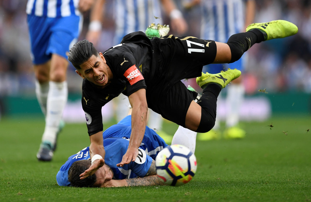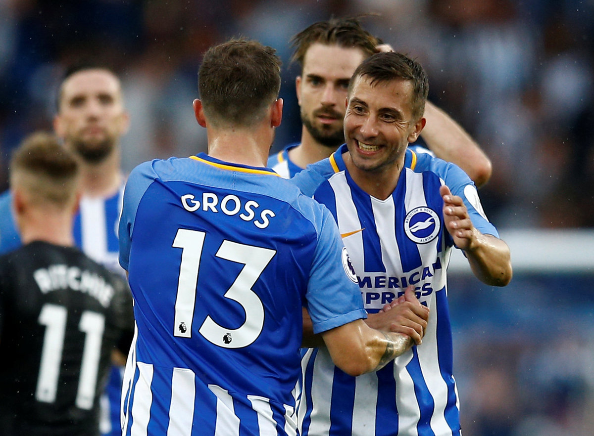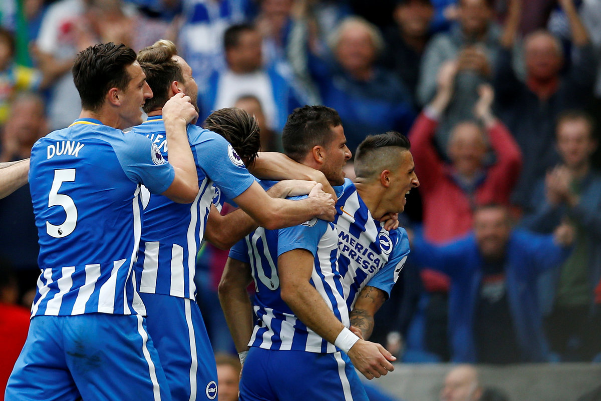 Soccer Football - Premier League - Brighton & Hove Albion vs Newcastle United - Amex Stadium, Brighton, Britain - September 24, 2017 Brighton's Bruno Saltor hugs Newcastle United's Jesus Gamez after the match REUTERS/Peter Nicholls EDITORIAL USE ONLY. No use with unauthorized audio, video, data, fixture lists, club/league logos or "live" services. Online in-match use limited to 75 images, no video emulation. No use in betting, games or single club/league/player publications. Please contact your account representative for further details.Soccer Football - Premier League - Brighton & Hove Albion vs Newcastle United - Amex Stadium, Brighton, Britain - September 24, 2017 Brighton’s Shane Duffy celebrates after the match REUTERS/Peter Nicholls EDITORIAL USE ONLY. No use with unauthorized audio, video, data, fixture lists, club/league logos or "live" services. Online in-match use limited to 75 images, no video emulation. No use in betting, games or single club/league/player publications. Please contact your account representative for further details.Soccer Football - Premier League - Brighton & Hove Albion vs Newcastle United - Amex Stadium, Brighton, Britain - September 24, 2017 Brighton's Lewis Dunk celebrates after the match REUTERS/Peter Nicholls EDITORIAL USE ONLY. No use with unauthorized audio, video, data, fixture lists, club/league logos or "live" services. Online in-match use limited to 75 images, no video emulation. No use in betting, games or single club/league/player publications. Please contact your account representative for further details.Soccer Football - Premier League - Brighton & Hove Albion vs Newcastle United - Amex Stadium, Brighton, Britain - September 24, 2017 Newcastle United's Mikel Merino shoots at goal REUTERS/Peter Nicholls EDITORIAL USE ONLY. No use with unauthorized audio, video, data, fixture lists, club/league logos or "live" services. Online in-match use limited to 75 images, no video emulation. No use in betting, games or single club/league/player publications. Please contact your account representative for further details.Soccer Football - Premier League - Brighton & Hove Albion vs Newcastle United - Amex Stadium, Brighton, Britain - September 24, 2017 Newcastle United's Ciaran Clark heads at goal REUTERS/Peter Nicholls EDITORIAL USE ONLY. No use with unauthorized audio, video, data, fixture lists, club/league logos or "live" services. Online in-match use limited to 75 images, no video emulation. No use in betting, games or single club/league/player publications. Please contact your account representative for further details.Soccer Football - Premier League - Brighton & Hove Albion vs Newcastle United - Amex Stadium, Brighton, Britain - September 24, 2017 Brighton's Tomer Hemed celebrates scoring their first goal with teammates REUTERS/Peter Nicholls EDITORIAL USE ONLY. No use with unauthorized audio, video, data, fixture lists, club/league logos or "live" services. Online in-match use limited to 75 images, no video emulation. No use in betting, games or single club/league/player publications. Please contact your account representative for further details.