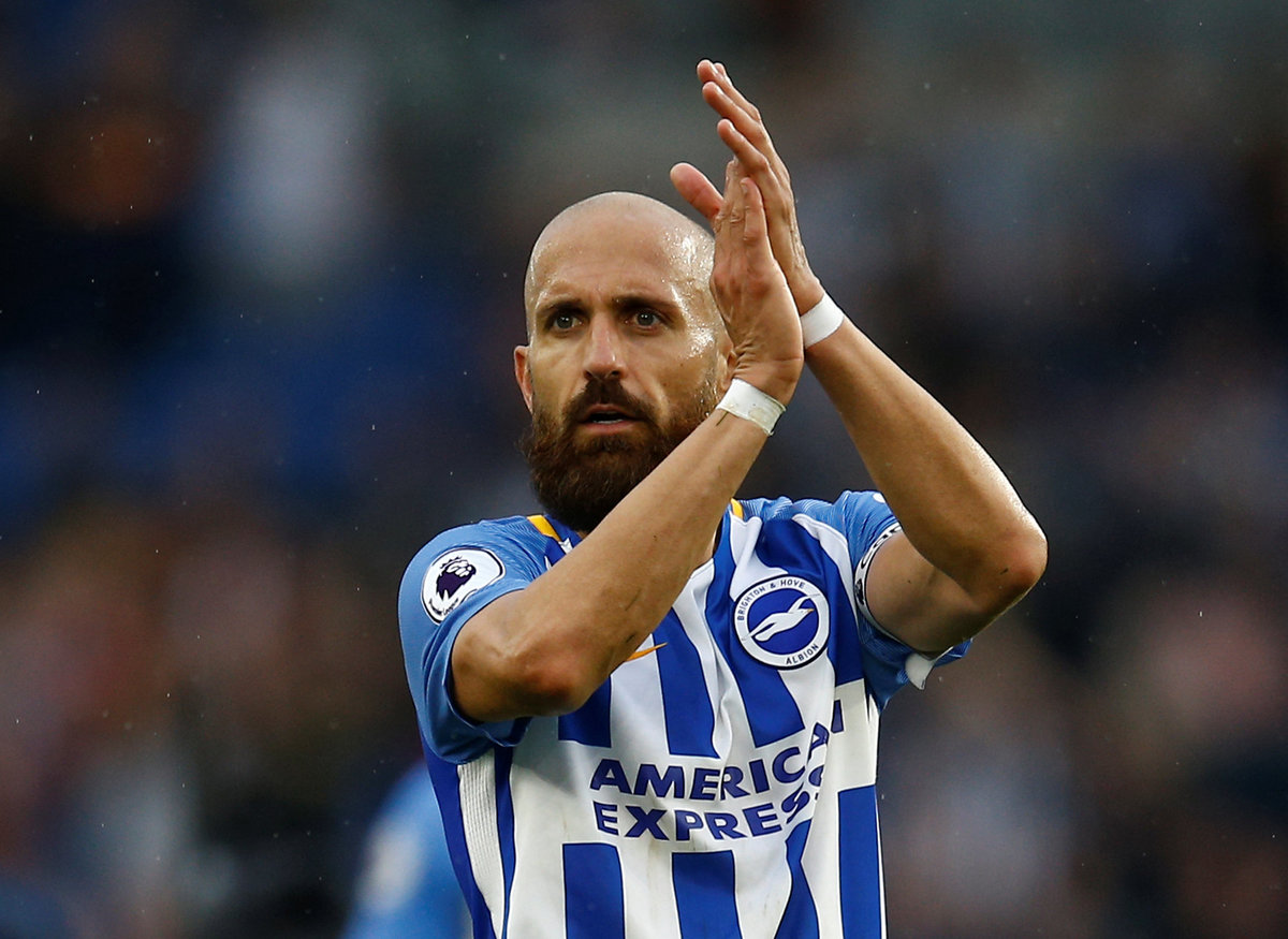 Soccer Football - Premier League - Brighton & Hove Albion vs Newcastle United - Amex Stadium, Brighton, Britain - September 24, 2017 Brighton's Bruno Saltor applauds fans after the match REUTERS/Peter Nicholls EDITORIAL USE ONLY. No use with unauthorized audio, video, data, fixture lists, club/league logos or "live" services. Online in-match use limited to 75 images, no video emulation. No use in betting, games or single club/league/player publications. Please contact your account representative for further details.