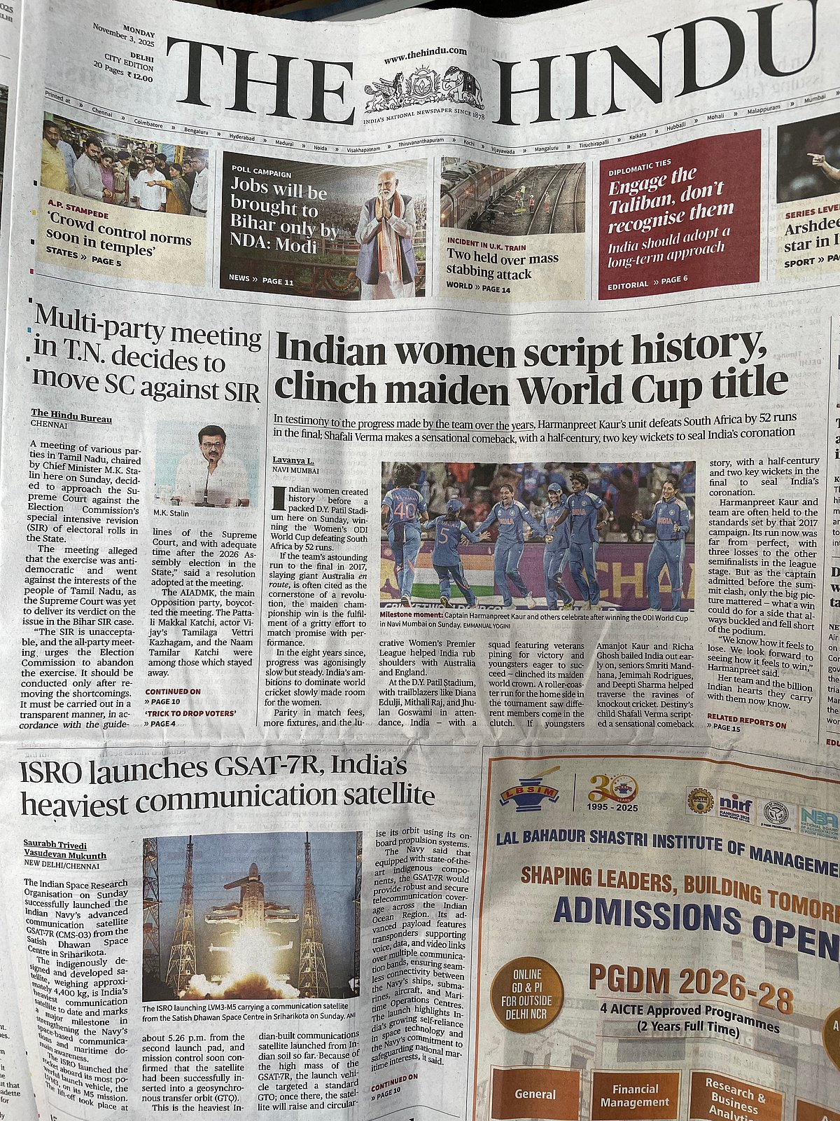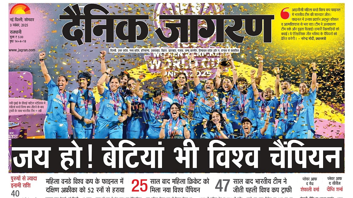 After the story of India’s first Women’s World Cup win unfolded under the floodlights of Mumbai’s DY Patil Stadium, it played out again the next morning across the front pages of the country’s biggest newspapers. Photographs of the Indian women’s cricket team – arms aloft, confetti in the air – displaced Bihar elections, markets and everything else.