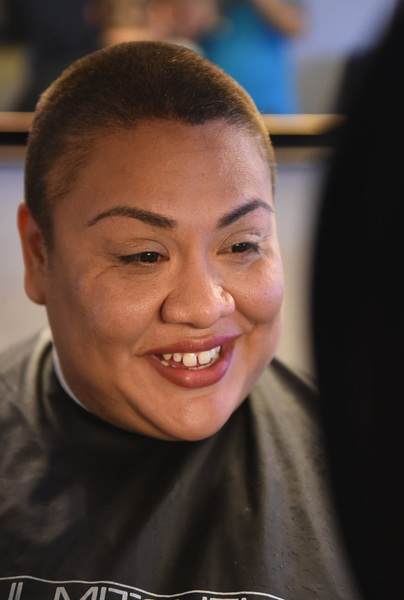 FRESNO, Calif. _ Jadyn Benavidez-Soza's smile was all anyone in the Fresno barbershop cared about Friday morning as her mother's long, dark hair fell to the floor.
