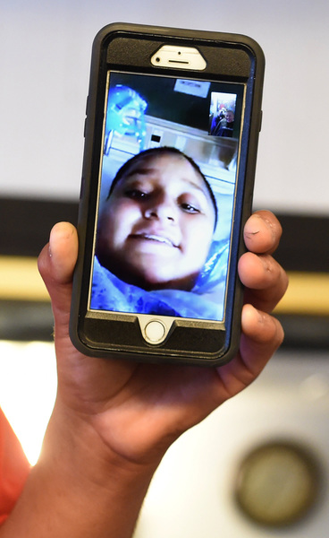 And three weeks after being hit southeast Fresno, mother and daughter connected on FaceTime _ Jadyn from her bed at Community Regional Medical Center and Annie Soza in a barber chair at Fresno's Illest Tattoo Barber Shop.