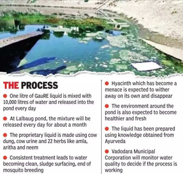 Vadodara: Imagine cleaning the water in a pond at a minuscule expense of two to three paise per litre of the water stored in the waterbody. Strange as it might sound, but that is exactly what the Vadodara Municipal Corporation (VMC) is trying to achieve using a herbal concoction at the Lalbaug pond.