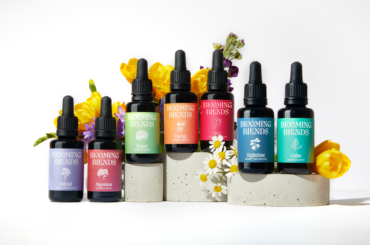 “Tinctures were hidden away in obscure sections of specialised stores, often without adequate information,” she says. “Drawing on my background in wellness cuisine, I wanted to make herbal remedies more approachable and user-friendly through clear, informative packaging – thus Blooming Blends was born.”