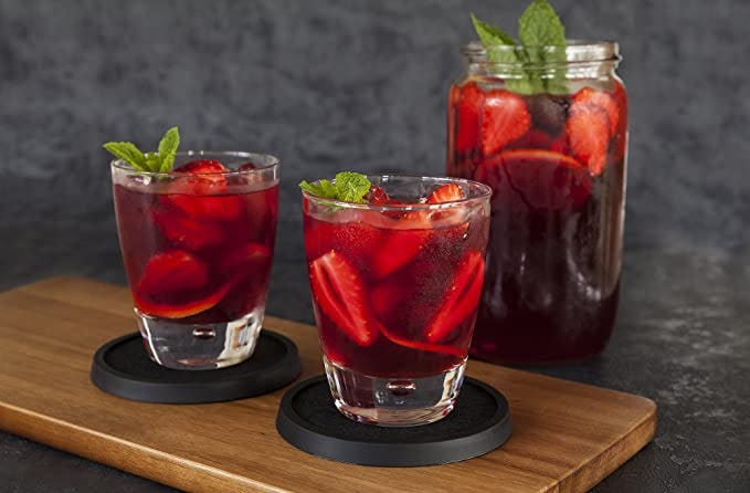 Set those condensation-covered cocktails down on these clever coasters and you won’t have to worry that the furniture will suffer from drip-off. Each rubber coaster has a felt lining that can be removed, washed, and replaced. And that felt soaks up water so the coasters stay dry and the drinks can sweat all they like. They come in four colors.