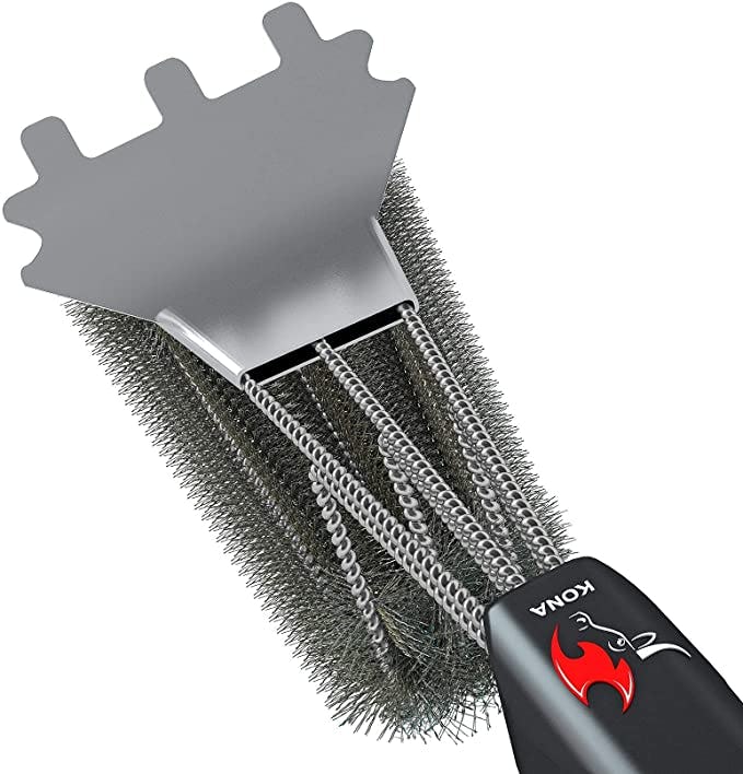 When you’re ready to cook, cleaning the grill is a necessary evil you want to be done with as quickly as possible. This combo scraper and steel-bristle brush is the tool that will get you there. The ridged metal end scrapes off crud while the brush takes care of the finish work. The long handle is easy to grip and sturdy.