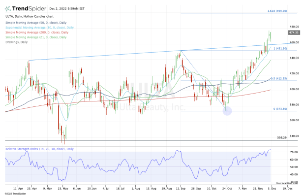 As long as it can do that, the trend remains intact and the bulls can look to ride Ulta Beauty stock higher.