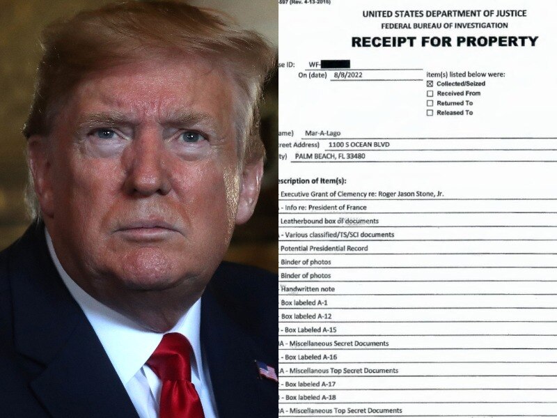 The property receipt, which was given to Mr Trump's lawyers after the search, listed about 20 boxes in total, including 11 sets of classified documents.