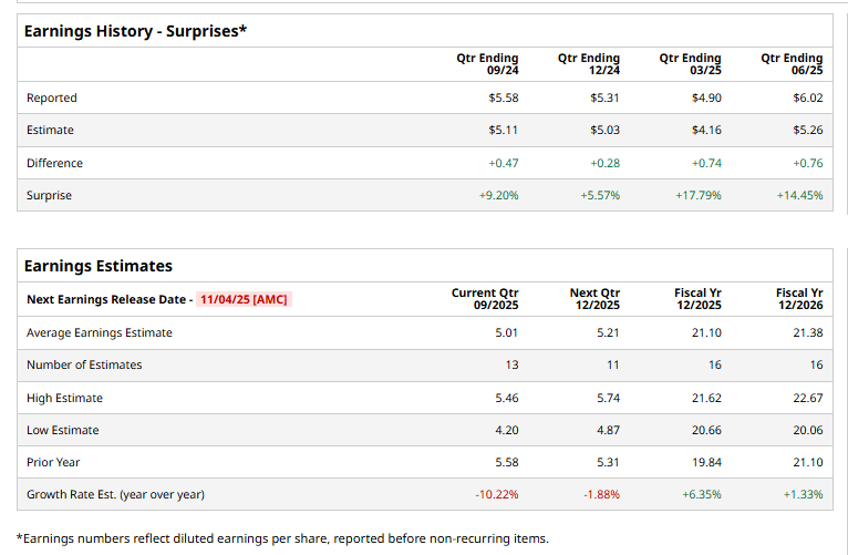 The company is expected to release its fiscal Q3 2025 earnings results after the market closes on Tuesday, Nov. 4. Ahead of this event, analysts expect AMGN to report a profit of $5.01 per share, down 10.2% from $5.58 per share in the prior year's quarter. It has consistently surpassed Wall Street's bottom-line estimates in the past four quarters.