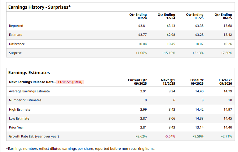 The medical technology titan is expected to announce its fiscal fourth-quarter earnings for 2025 before the market opens on Thursday, Nov. 6. Ahead of the event, analysts expect BDX to report a profit of $3.91 per share on a diluted basis, down 2.6% from $3.81 per share in the year-ago quarter. The company has consistently surpassed Wall Street’s EPS estimates in its last four quarterly reports.