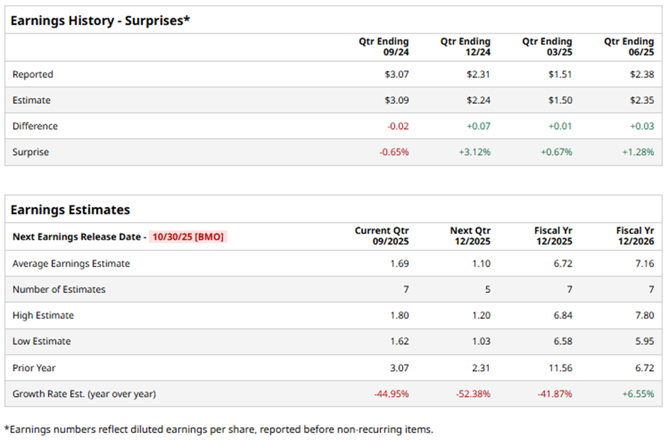 The Irving, Texas-based company is expected to release its fiscal Q3 2025 results before the market opens on Thursday, Oct. 30. Ahead of this event, analysts project BLDR to report an adjusted EPS of $1.69, a nearly 45% decrease from $3.07 in the year-ago quarter. It has exceeded Wall Street's bottom-line estimates in three of the last four quarters while missing on another occasion.