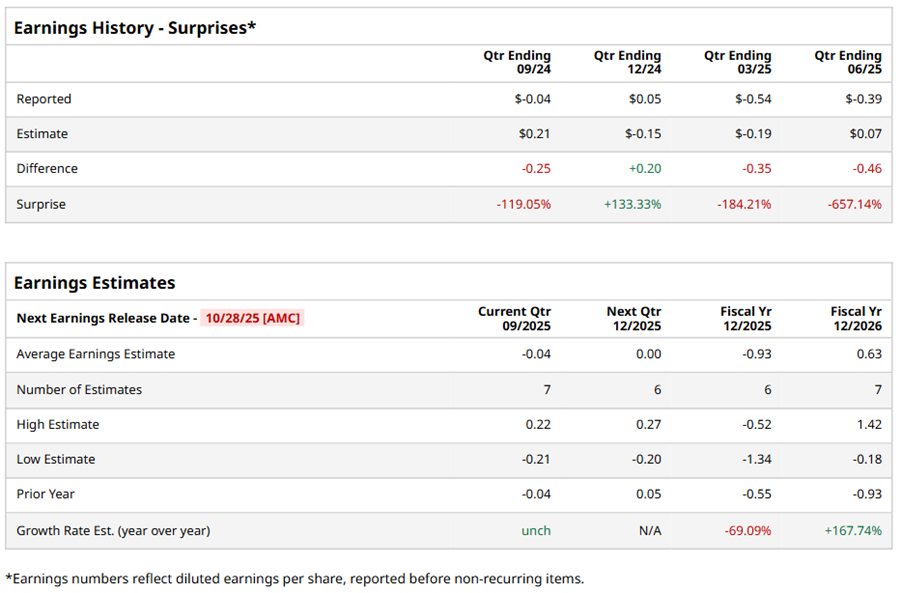 Reno, Nevada-based Caesars Entertainment, Inc. (CZR) is a gaming and hospitality company that owns and operates casino, poker, roulette, and other gaming facilities and provides food and beverage services. Valued at $4.6 billion by market cap, the company owns, leases, or manages domestic properties in 18 states and utilizes its hotels, restaurants, bars, entertainment, racing, sportsbook offerings, retail shops, and other services. The casino entertainment company is expected to announce its fiscal third-quarter earnings for 2025 after the market closes on Tuesday, Oct. 28.