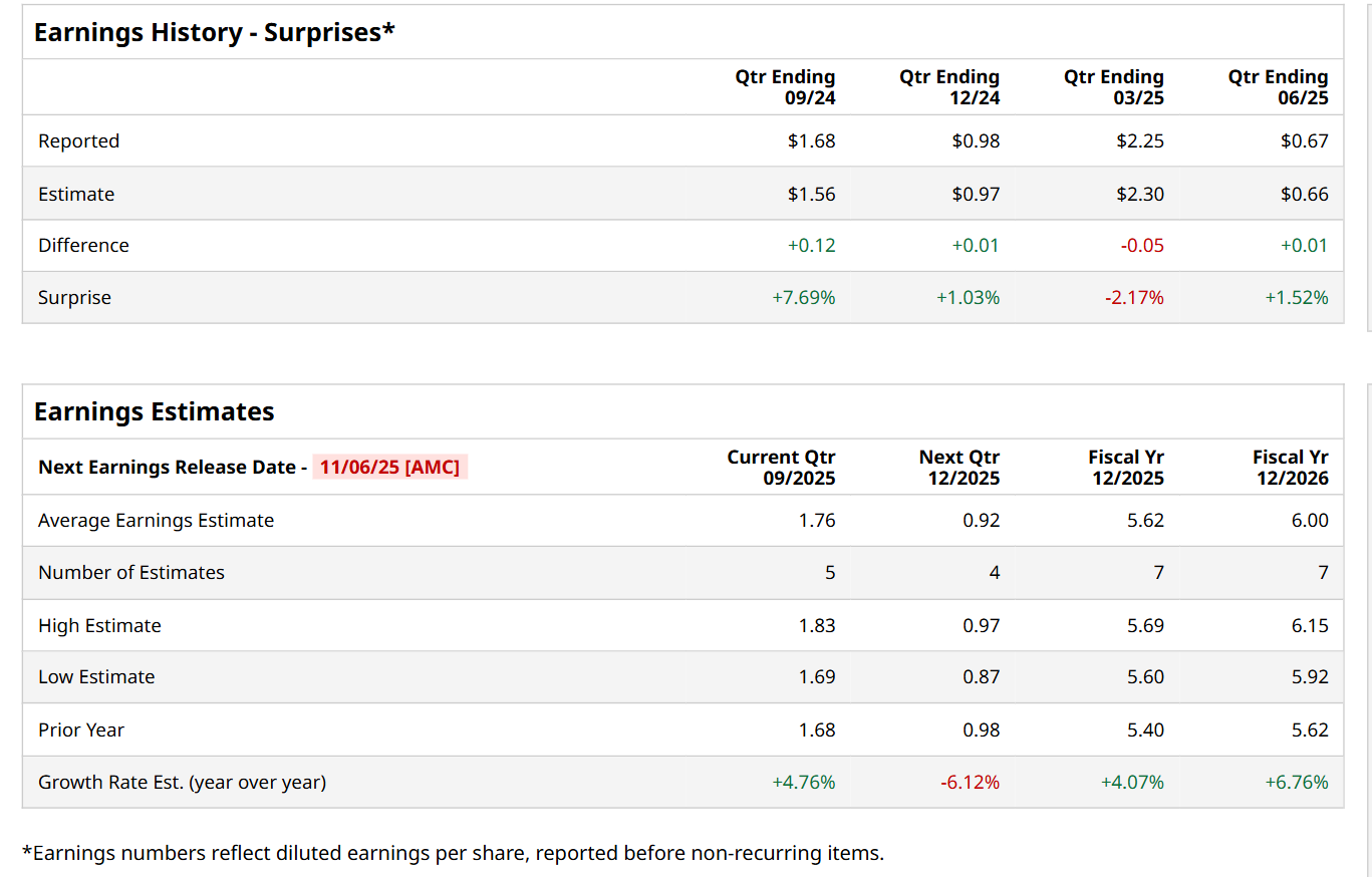 New York-based Consolidated Edison, Inc. (ED) is a utility company that provides electricity, natural gas, and steam services to its customers. Valued at a market cap of $36.8 billion, the company focuses on ensuring safe, reliable, and sustainable energy delivery, with growing investments in clean energy infrastructure, grid modernization, and renewable energy projects. It is scheduled to announce its fiscal Q3 earnings for 2025 after the market closes on Thursday, Nov. 6.
