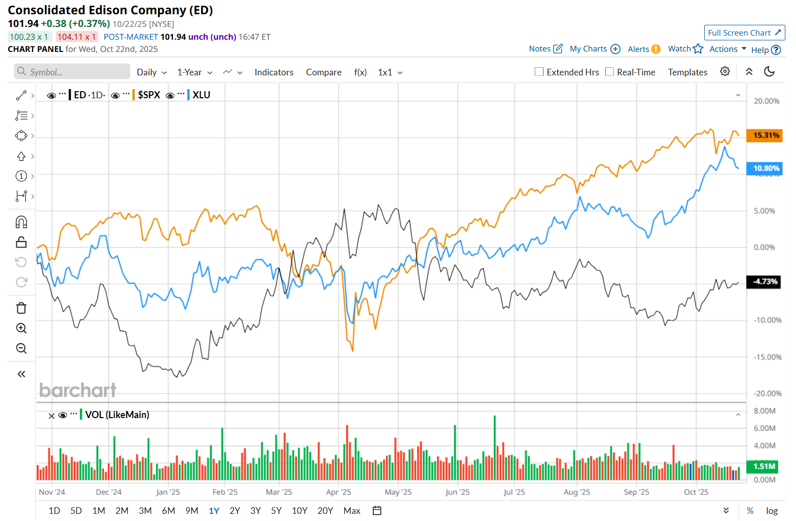 Shares of ED have declined 3.6% over the past 52 weeks, underperforming both the S&P 500 Index's ($SPX) 14.5% return and the Utilities Select Sector SPDR Fund’s (XLU) 11.1% rise over the same time frame.
